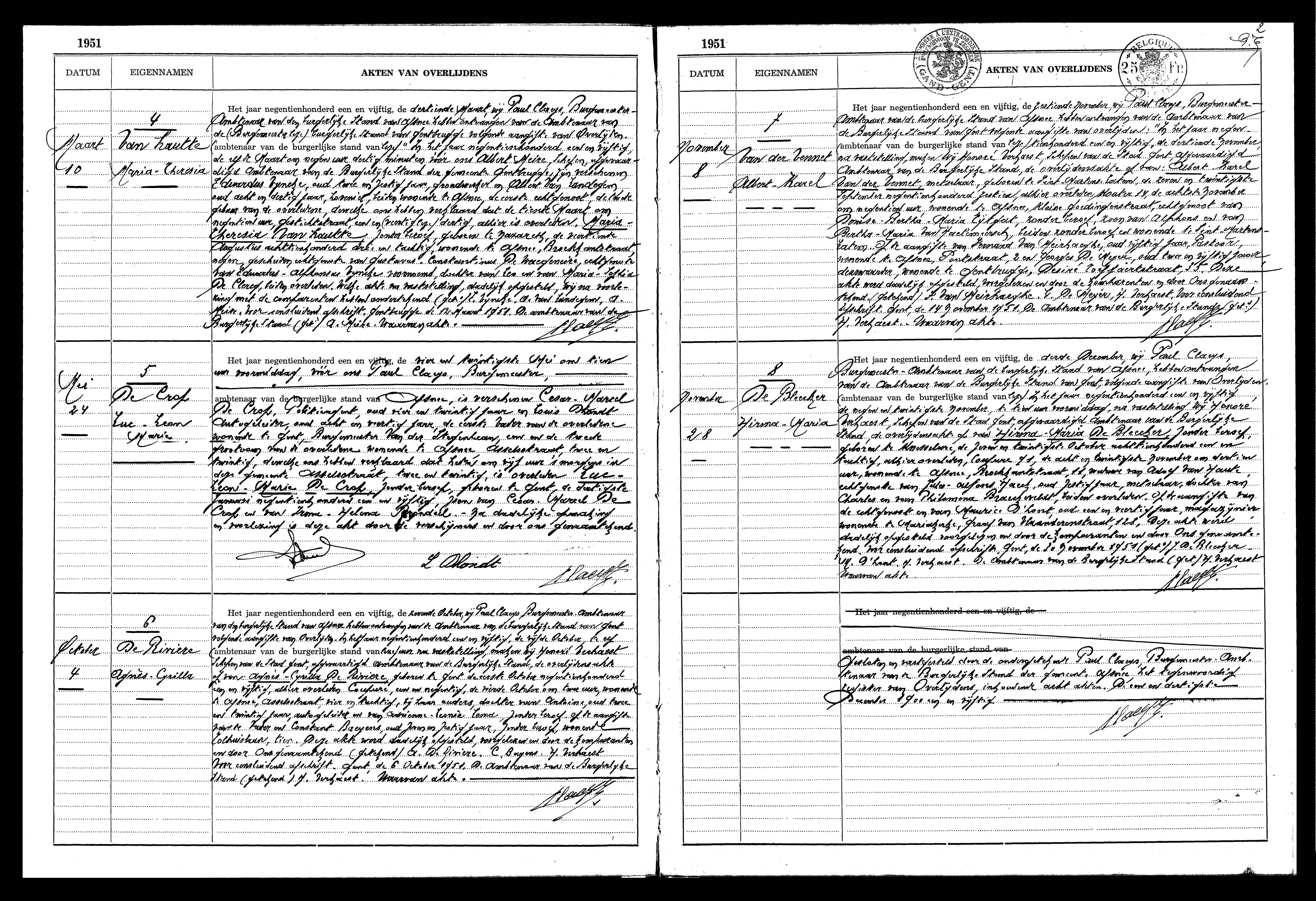 Archief Gent, BS Overlijden
