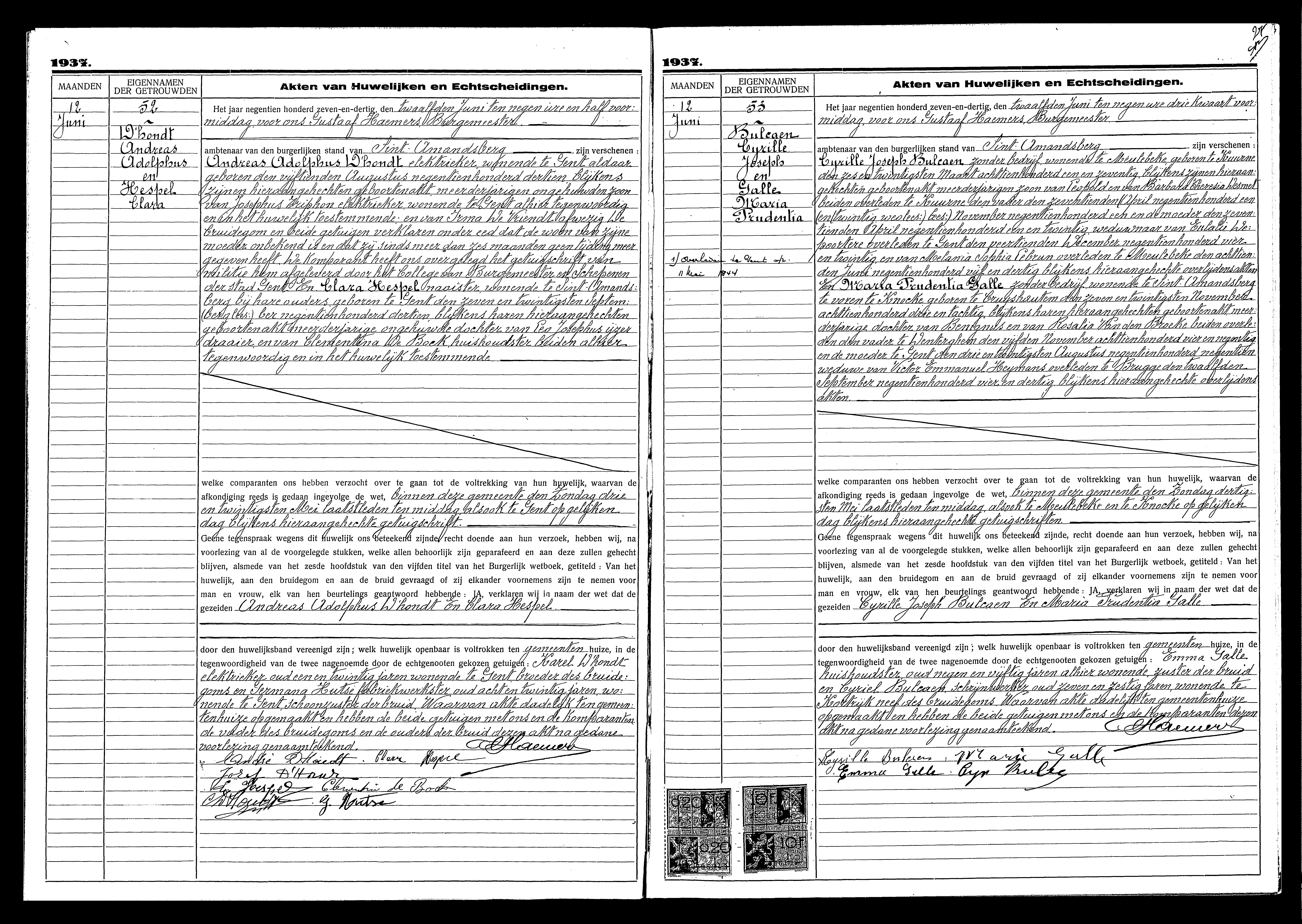 Archives Gand, L'état civil des mariages
