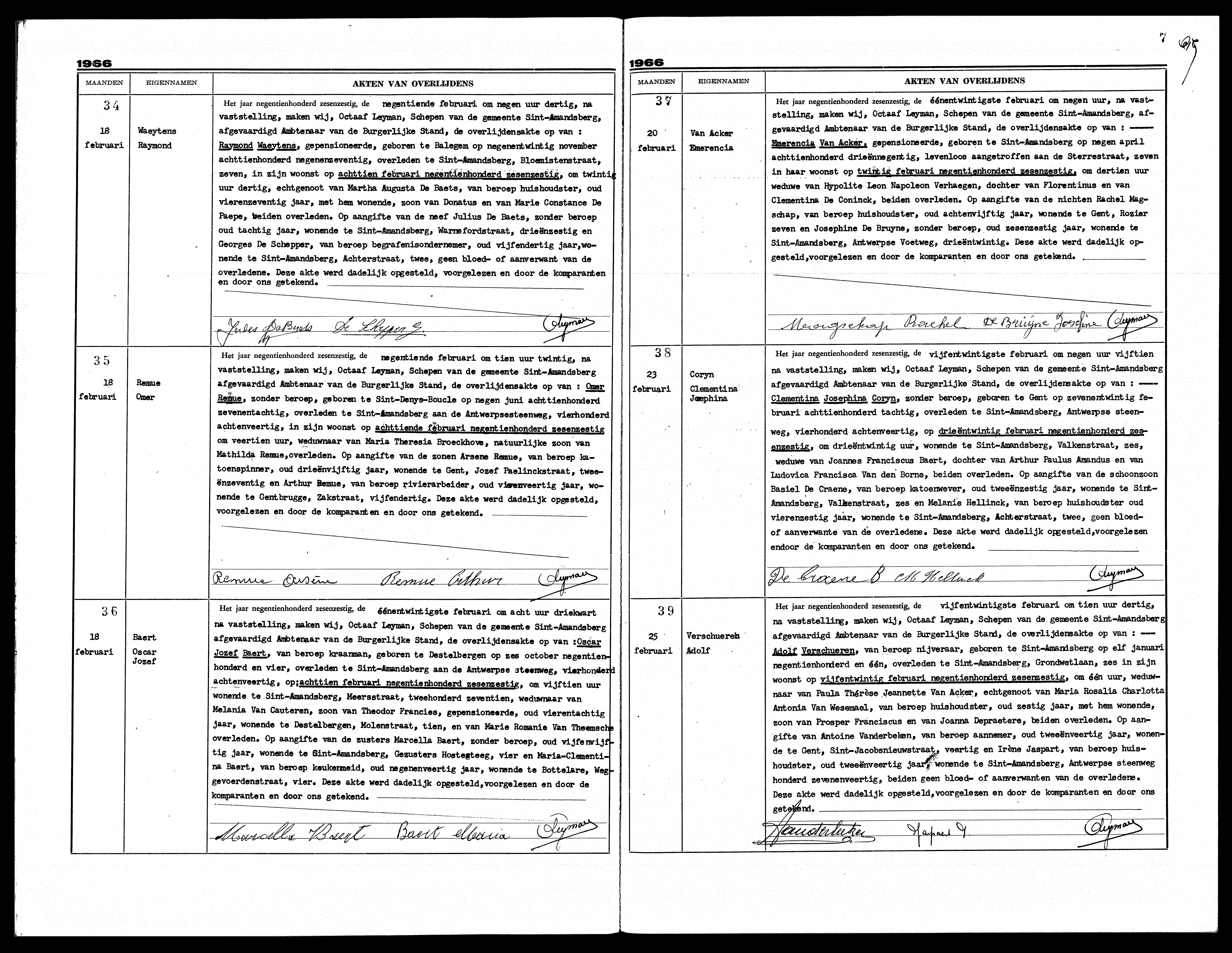 Archiv Gent, Bürger Anmeldung Todesfälle