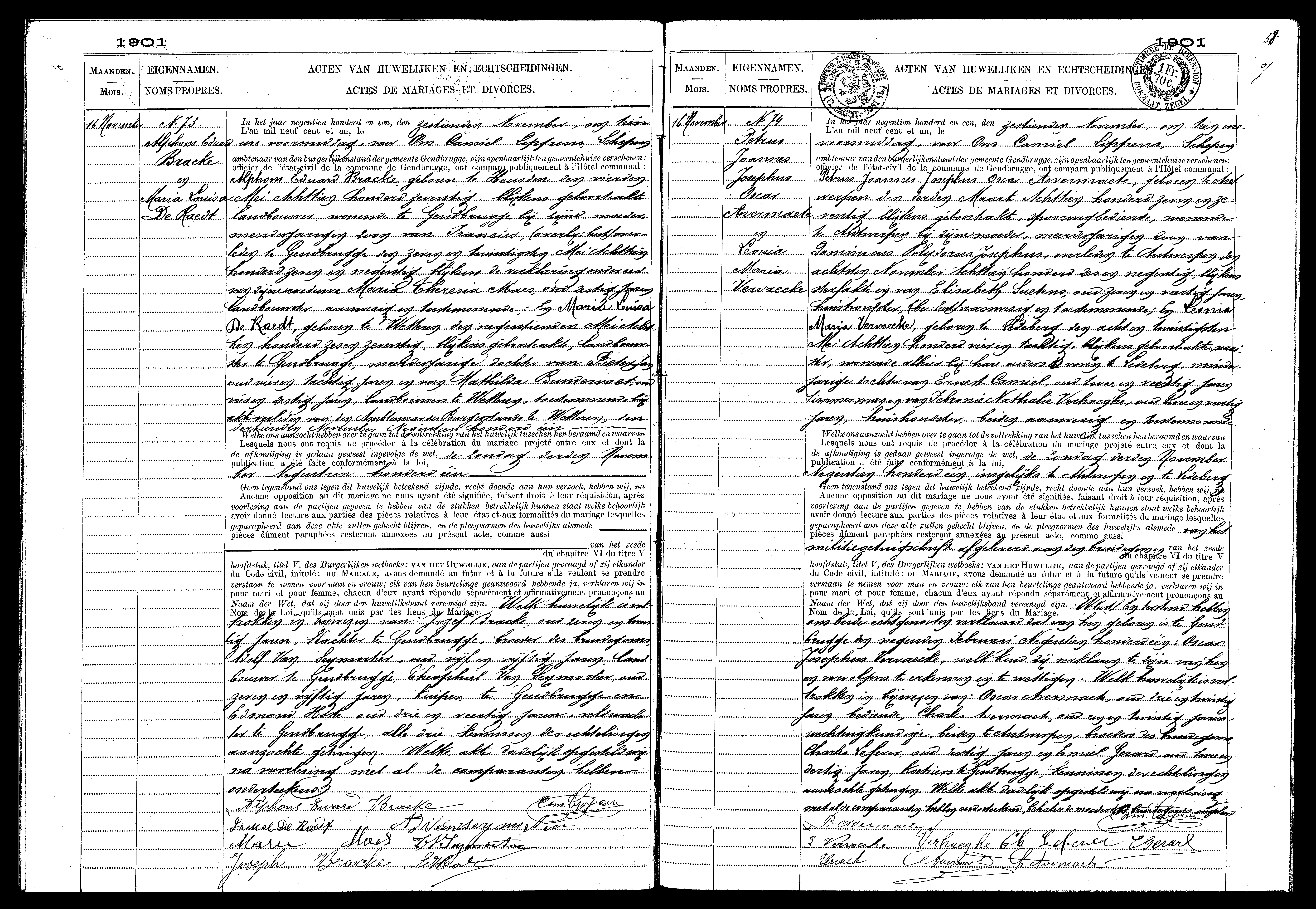 Archives Gand, L'état civil des mariages