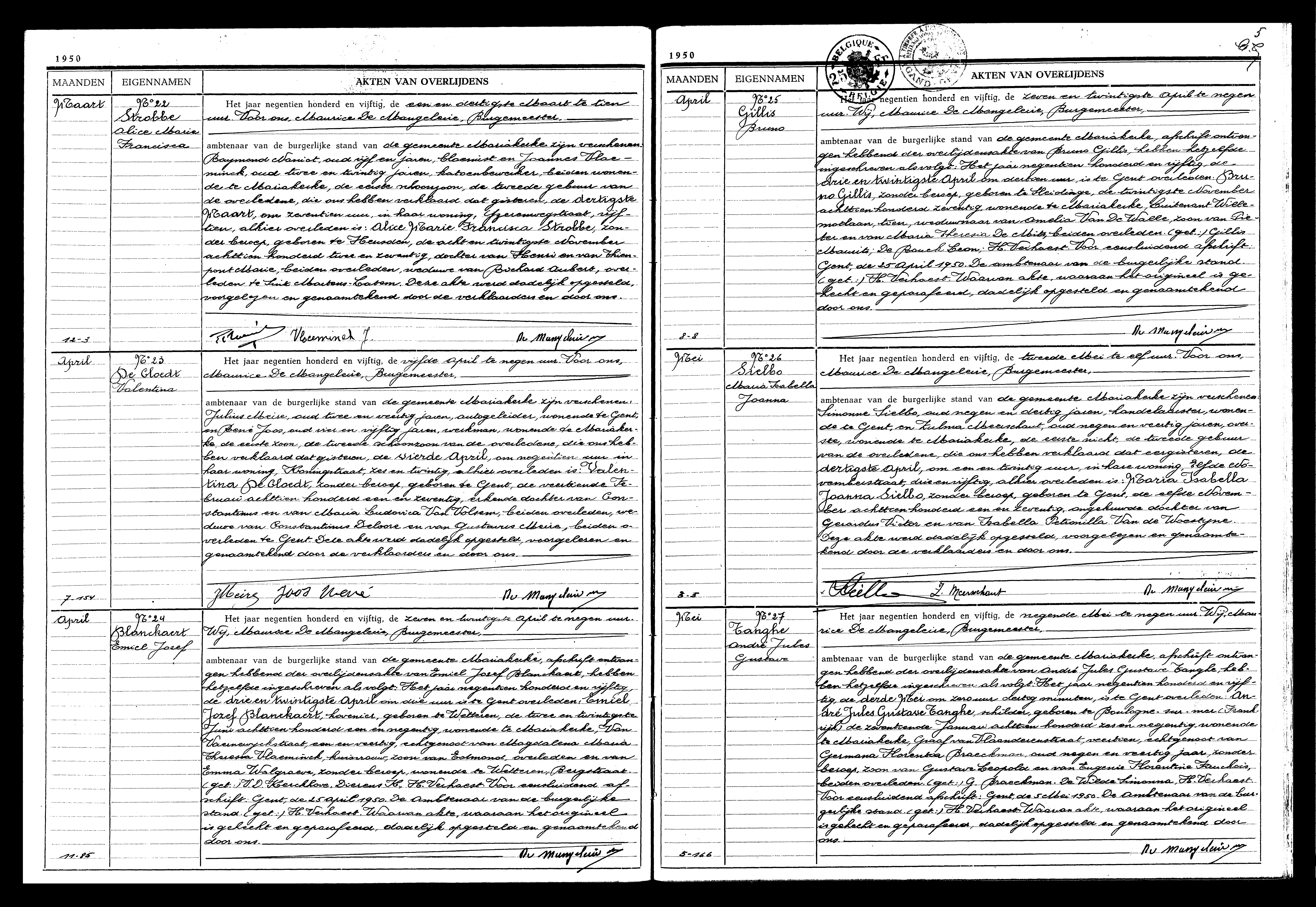 Overlijden op te Gent (België)