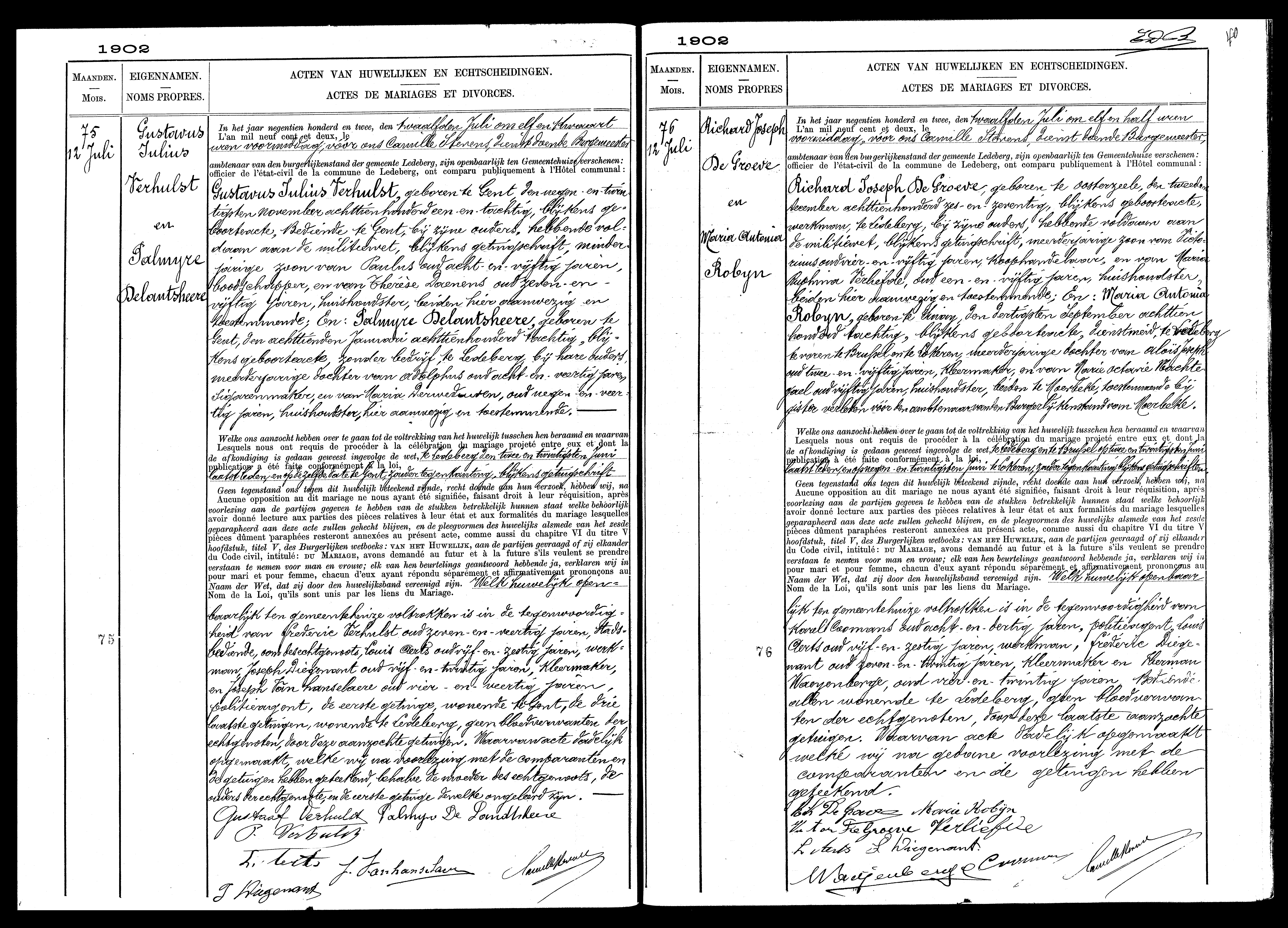 Archives Gand, L'état civil des mariages