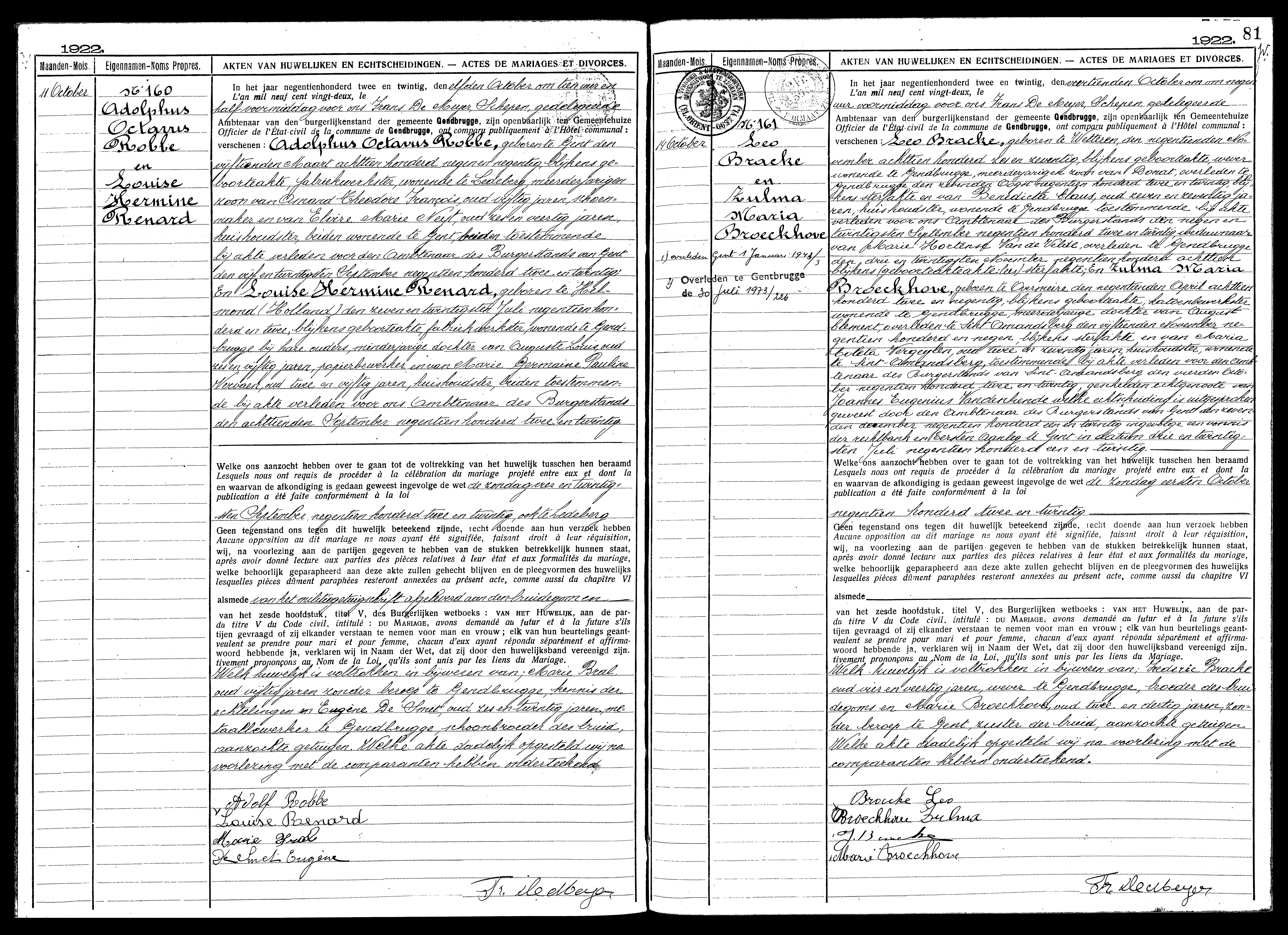 Archief Gent, BS Huwelijk