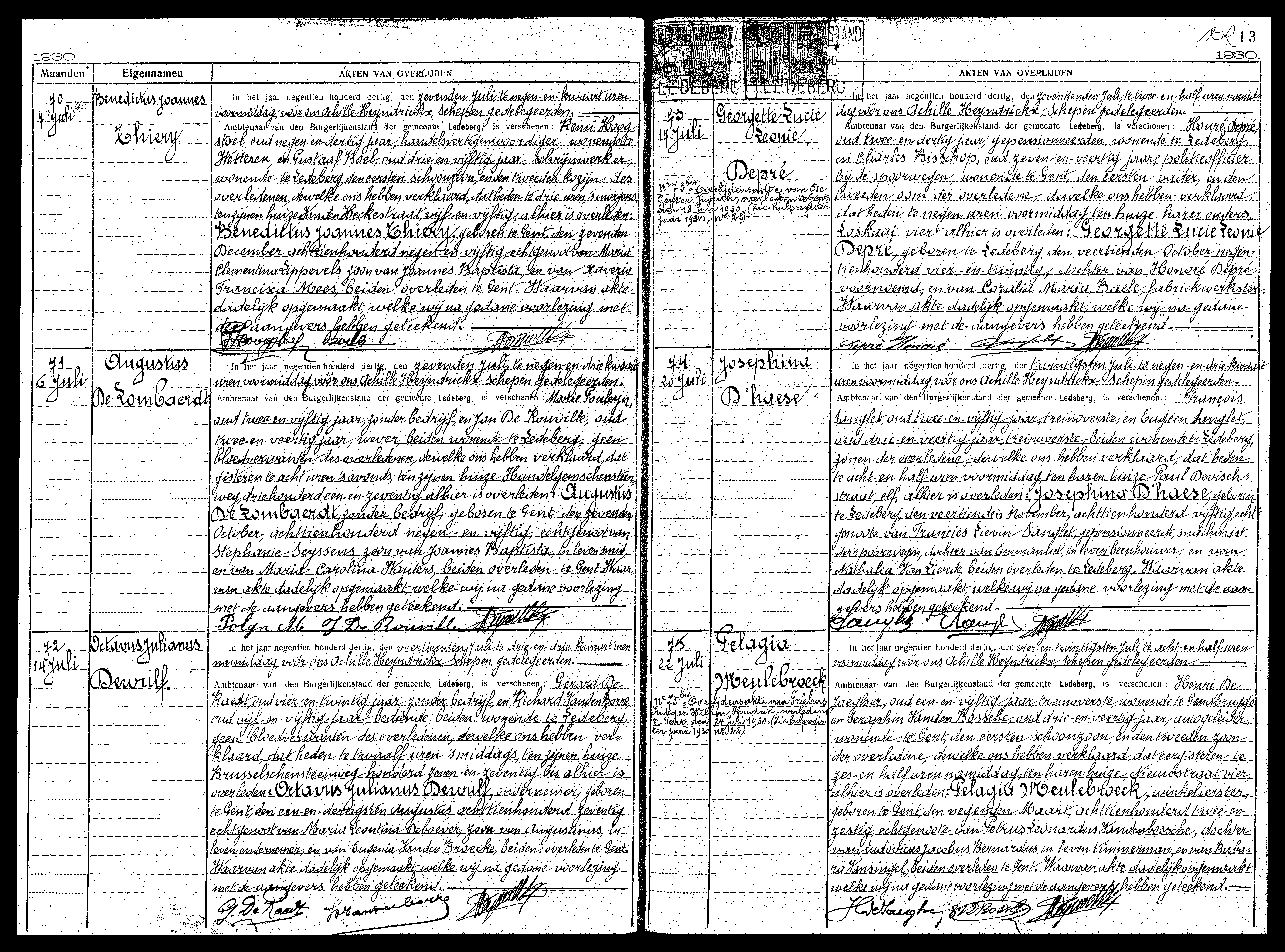 Archives Gand, L'état civil des décès