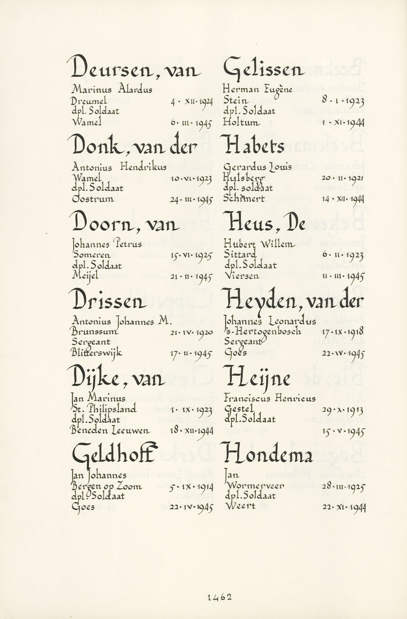 Erelijst van gevallenen 1940 - 1945, Den Haag, folio 1462