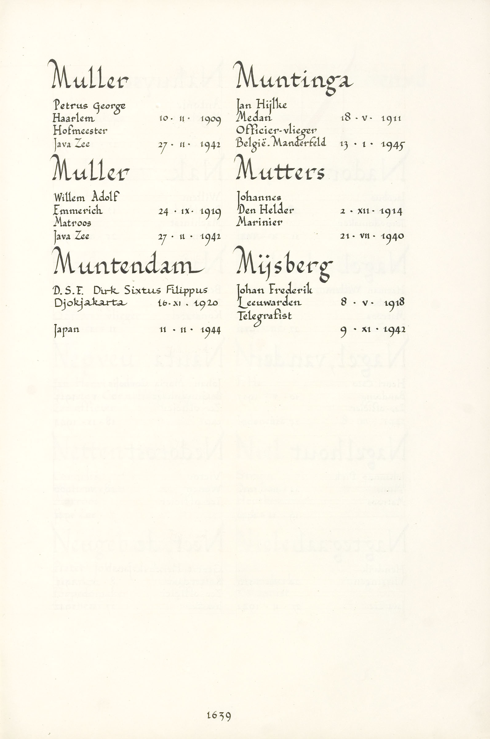 Erelijst van gevallenen 1940 - 1945, Den Haag, folio 1639