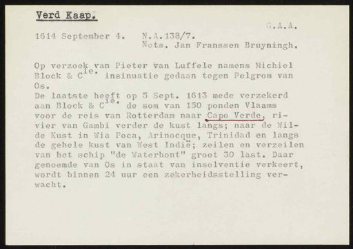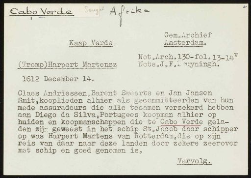 inventarisnummer 352, Regesten van akten in de Amsterdamse notariële archieven en enige andere bronnen. 1578 - ca. 1800, Collectie Hart', 'H' of 'hoofdsysteem'. Regesten geordend op trefwoord. 1578 - 1700, 1711 - ca. 1800, Aardrijkskundige namen, Kaapverdische eilanden - Noord-Amerika/chronologie Ver.Staten 1649