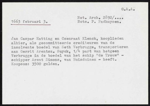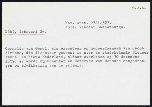 inventarisnummer 354, Regesten van akten in de Amsterdamse notariële archieven en enige andere bronnen. 1578 - ca. 1800, Collectie Hart', 'H' of 'hoofdsysteem'. Regesten geordend op trefwoord. 1578 - 1700, 1711 - ca. 1800, Aardrijkskundige namen, Ver. Staten 1663 - Ver. Staten 1755
