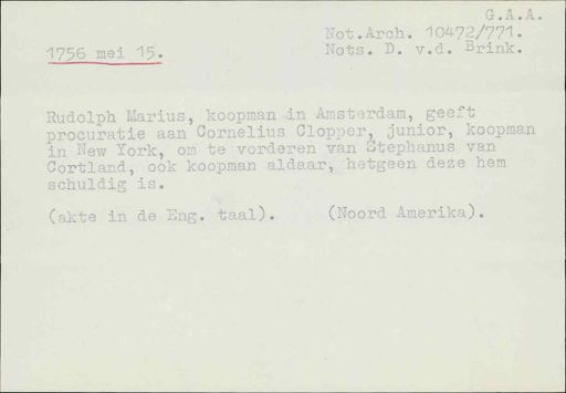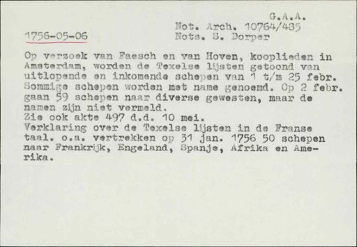 inventarisnummer 355, Regesten van akten in de Amsterdamse notariële archieven en enige andere bronnen. 1578 - ca. 1800, Collectie Hart', 'H' of 'hoofdsysteem'. Regesten geordend op trefwoord. 1578 - 1700, 1711 - ca. 1800, Aardrijkskundige namen, Ver. Staten 1756 - Ver. Staten 1793