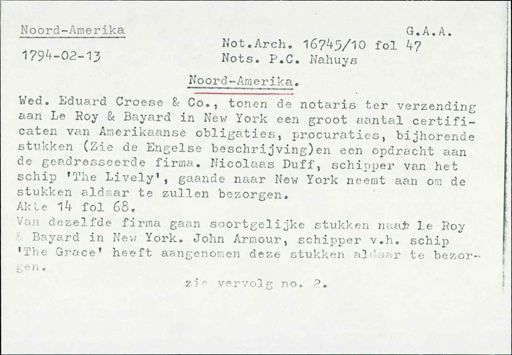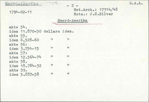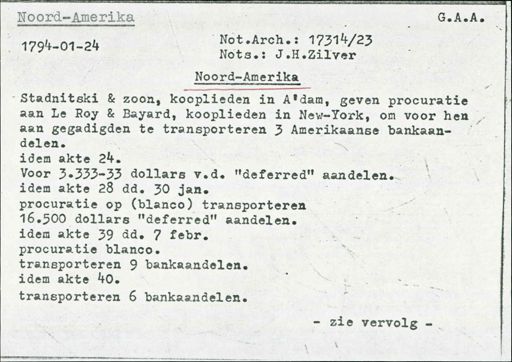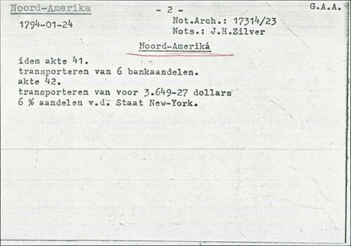 inventarisnummer 356, Regesten van akten in de Amsterdamse notariële archieven en enige andere bronnen. 1578 - ca. 1800, Collectie Hart', 'H' of 'hoofdsysteem'. Regesten geordend op trefwoord. 1578 - 1700, 1711 - ca. 1800, Aardrijkskundige namen, Ver. Staten 1794 - Ver. Staten 1825