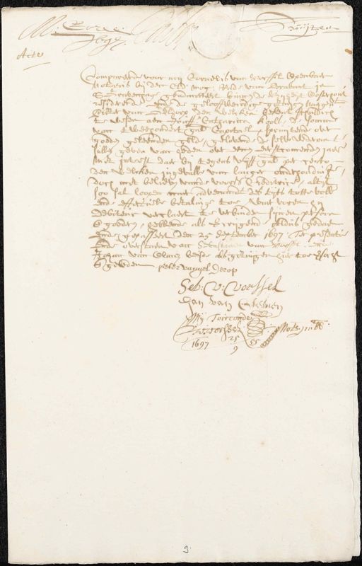Regionaal Archief Tilburg, archieftoegang 2009, Inventaris van de notariële archieven Oosterhout, 1612-1935, inventarisnummer 47, CORNELIS VAN VORSSEL, 1676 - 1716, Obligaties en minuutakten,, 1696 - 1704 oktober 17