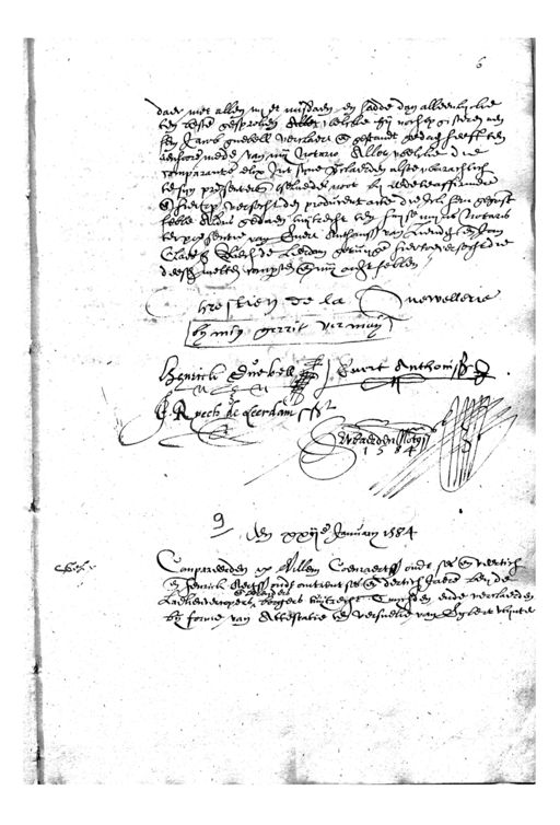 Het Utrechts Archief, archieftoegang 34-4, Notarissen in de stad Utrecht 1560-1905, inventarisnummer 7, Jacob van Herwaerden, Protokol, met indices, 1575-1612, 1584-1585 mrt