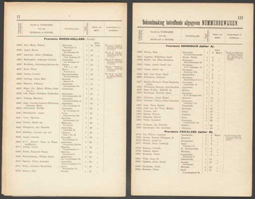 inventarisnummer 7511, Archief van de Commissaris van de koning, 1815-1920, Stukken betreffende bijzondere onderwerpen, Verkeer en vervoer, Verkeer en vervoer te land, Opgaven van verleende nummerbewijzen en rijbewijzen voor motorrijtuigen. 1906-1921, 1914