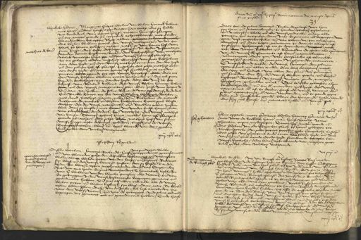 Mathias de Bove Winckele, Hamme, Margriete Ses wedue van wylen Henrick Bellens met haeren momboir, heeft opgedragen haer tocht, die sy hadde int derdedeel van eenen huyse metten hove oft plaetsen ende oic metten gronde etcetera, comende achterweerts met eender waerderen, tot opten vlyet aldaer, gelegen achter mach dat wylen Willem Troe der voirscreven Margrieten vader toe plach te hoiren, gelegen achter Mathys van Boen hof van synen huyse, dat opte dekene, gelegen is, byder infermarien vanden aen beghinen, buyten den beghynhove van Mechelen welck vercochte huys metten voirscreven hove oft plaetsen de oic gelegen aldaer, tusschen tkerchof van Sinte Kathelinen aen deen zyde ende der voirscreven Mathys erve aen dander zyde ende den selven hof oft plaetse, tusschen desselfs Mathys erve aen deen zyde ende eenen ganck oft Steenwech met eender poirten, tot gaende tot opt voirscreven kerchof, dat dien oic den voirscreven wylen Willem Croes toehoirde ende die nu een kynderen toebehoirt aen dander zyde. A Domino Mechliniensi, Waranderende etcetera, tot behoef van Rommond Bellene, des voirscreven wylen Henricx Bellens soon ende der voirscreven Magrieten soon, dier yerst inne gegoet Ende dair na hebben de selve Rommond voir op tvoirscreven derdedeel Ende Barble Croes, oic des voirscreven wylen Willems dochter voir dander derdedeel met Aerd Mathys haeren man, ende Katheline de Moinck Anthonis de Moinck ende wylen Kathelinen Croes syns wyf dochter, die der voirscreven Margriete ende Barblen Croes zuster was doen sy leefde, met heere Jan vander Hulst haeren man voir tderdedeel derdedeel, hen vercocht, den voirgenoemde Mathys van Boonen, tvoirgenoemde geheel huys, metten hove oft plaetsen gronde etcetera achter desselfs wylen Mathys hoff van synen voirscreven huyse opte dekenye, gelegen, tusschen de voirscreven Temtgenoeten, Waranderende etcetera opte weerde van drie groten Brabants gelts dair jaerlicx vutgaende Assignavit XXVII Rinsgulden XIII aprilis executores quondam Peters vanden loepe et et uxor Duffle, Zoeten. Laureys Roelands, heeft geapprobeert geconfirmeert vuten vryen wille ende van weerden gehouden, alsulken testament ende vutersten wille, als wylen Peter vanden Loepe ende Lysbeth Roelants wylen syn wyf ende des voirscreven Laureys zuster, doen sy leefde tanderen tyden, Te wetene opten neghentienden dach van Septembry int jair ons heeren dusent vierhonder tzeventich lestleden voire Willem vanden Wyele priester, als notaris ende voir de getuygen inden voirscreven testamente begrepen, gemaect ende geordineert hebben, Ende oic alsulken condicille, als de voirscreven wylen Peter ende wylen Lysbeth syn wyf daer naer, Te wetene opten twaelfsten dach van Augusto, nu last overleden, oic voir den voirscreven notaris ende voir de getuygen inde selve condicille begrepen oic gemaect ende ende geordineert hebben, Ende heeft Anno XIIII XXIII denaert die mense Aprilis fuit Pascha daer toe deselve Laureys Roelands gelooft voir hem syn hoir ende nacomelingen, te houden, tvoergenoemde testament ende vutersten wille ende de voirscreven condicille ende oic alle pointen ende acticulen daer inne bescreven ende begrepen voir goet vast, onverbrekelic ende van weerden, ten eeuwigen daghe ende daer tegen nemmermeer te doen, te alleggen oft te seggen, geheel, oft oic te doen doen inghe, noch oic den Janne Rabboots ende Rommonden de Grote als executeurs vanden voirgenoemde testamente oft haeren nacomelingen nemmermeer daer om voir geestelike oft weerlike gerichten quellen oft moegen in gheender manieren Quytscildende mede de voirscreven Laureys, den selven executeur ende allen anderen dien dat aengaen mach de vry ende ledich van allen den somme van penningen eene sculden, die hy de voirscreven wylen Peteren ende wylen Lysbetten Roelants, in eeniger vuegen, soude moegen heysschen, geheelic ende al, Om welke gelooften alsoe tonderhouden ende om der meerder zekerheyt, den voirscreven executeurs daeraf te doene heeft de voirscreven Laureys, de selve executeur, daervoir verbonden ende te pande geset alle sine haeffelike goeden waer die bevonden zelen worden die hy nu heeft ende namaels hebben ende vercrigen sal XIIIa aprilis tempore simile Johannes Ghoeten Hamme, Expoele, maen Gommaers wylen Henricx Gommaers dochter met Jacop de Beckere haren man, heeft vercocht Janne Ghoeten, onsen medescepen, Eenen hof metten gronde etcetera die wylen Jan de Hertoge, toe plach te hoiren, gelegen tot Neckerspoele in Sinte Peters prochie opte Hergracht tusschen lande desselfs Jan Ghoetens ander erve, aen twee zyde ende Janne van Hevere erve aende derde zyde, streckende, tot opte totten voirscreven heergracht, A Domino Mechliniensi, Waranderende. Opte weerde van neghen grooten Brabants gelts dair jaerlicx vutgaende ut supra de Gregorinne de Rumpst pre Wynkele, Duffle. Jan van Rumpst ende Lysbeth Romas Reysevaelden hadden inde name van hen selven ende oic inde name van Rommond syn wyf, die inde lyfpensie hier na bescreven hair heffen ende disposicie ende Magdaleenen van Rumpst haven kynderen, infra, des in hen vervingen, hebben opgedragen ende overgegeven tot behoef van heer Gregoris van Rumpst priester, de voirscreven Jans brueder, vier gouden Rynsgulden goede etcetera te wetene veertich groten Vlaems gelts voir elken van dien gerekent jaerlike lyfpensien, die de voirscreven Rommond ende Magdaleene tot have ende tot de langhstlevende live van hen beyden hadden, op alle de erffelike goeden metten gronde etcetera die den voirscreven Janne van Rumpst toe plagen te hoiren ende die hem byder doot van synen ouden ende van wylen Jacoppe van Rumpst synen brueder, verstorven ware ende die nu tertyt deen voirscreven heer Geere toebehoiren, bynnen etcetera gelegen. A Domino Mechliniensi, Waranderende voertaen hebben de voirscreven Jan ende Lysbeth syn wyf, Quytgesconden de voerscreven heer gegonne van alle de haeffelike goeden die hen de selve Janne by synden voirscreven onderen doot in eenige manieren verschenen mogen syn XXIIIIa aprilis