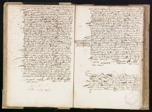 Op huijden den derden Januai nnno xvic. ende elff, Compareerde voor my Jacob meerhout, oenbaer nots. tot amstelre. residerende et. ter presentie e Andries ysbrantsz poter dese Stede, my nots. bekendt, de geliede voor hem zynen erven ende nacomelingen, deuchdelyck verplicht ende schuldich te weelse Geert Segentder Sijverts dr. zyn Coparante hysven petemoeye de somme van Sesse hondert ende vyftich ca: gul. tot veertich grooten tstucx spruijtende ter saecke van hebende ende verstote penningen tot syn genoegh ende contentement, voor desen van haer ontfangh welcke voor. somme van Sessehondert ende vijftich Carolus guldens hij Comparant aengenomen ende telooft heeft, als hyj aenneempt ende belooft by desen, de voorn. Geerte Siverts dhr. oft haerder actie hebbende eerlycken te voldoen ende te betalen tot haer vermaninge ende beluven costeloos ende schadeloos gelt. daer onder verbindende Special. gementioneert Inden Imertale zijn Comporants meublen ende huijsraedt, die hij Jegen¬ woordich heeft, ende noch zal mogen getrijgen, mitsgaders gende vande Ceert¬ Sijverts bij Ierent rrijn varmts zyn persoon ende alle zijne goed andere goederen, present ende toecommende egene uitgesondert, die handt ouergelever Submitterende allen rechteren ende recaten Soude fraude, Consenterende hij Comparant ten behouve als boven, hier van bij my notario gemaect, ende gelevert te werden acte In debita forma Gedaen binnen der voorss. Stede van amstelredamme ten huijse myns notaris ter presentie van Cael dircxsz ende claes Claessz Cleermaeckers het hier toe versocht Andries Isbrantsz Cornelis Derrcx # # clas lasens Op huijden den vyffden January Anno xvic ende elff Compareerde voor mij JacobsTeerhom Notaris tot Amsterdamme residerende Openbaer by den hove van hollandt geadmitteert ter presentie vanden ondergeschreven getuyggen DEersame Jan Franssen bruijningh mede Notaris Publicq alhier my Notaris seer wel bekent wessenc Oudt omtrent achtendertich Jaeren de welcke gerequireert endde versocht synde van Sr. Eduard Op huyden den derden Jananij @o 160 Sesthien hondert elff Compreerde von mij Jacob merhout penbaer notaris tot Amstelredamme residerende Et. ter presentie et Andries ysbrantsz poorte deser Stede amstelredamme my nots. bekendt Ende geliede voor hem zijnen erven ende nacmeling In titule van betalinge, opgedragen gecedeert en getransporteert te hebben, als hij idraecht, cedeert ende transporteert bij dessen aen Jacob Jansz Cuijt Lijeslager pt minneckendan, alslcke perthye Jansp, als hij Comparant onder den helven Jacob Janss ruijt berustende heeft, Bekennende h comparant daeraff al veldaen ende wel betaelt teweesen den lesten penninck metten eersten by handen vande voorn. Jacob Janss luyt, doende oversulcx tsynen behouve daer off quytscheldinge ende volcomen affstant bij desen omme daer mede gedaen te werden zyn vije wille ende geliefte, als met zijn eijgen goet, Ende alsooh Comparant daer behalin aenden von. met Jacob Janz t noch seeckere somme schuldich is, als by den zelffs Reekeninge zal blijcken heeft n Comparant aengenomen ende belooft als hy aenneempt ende beloof by desen den voorn. Jacob Jansz oft zyner actie hebben somme eerl. te voldoen ende te betalen totzijn voorsz. baainge ende helieven costeloos ende schadeloos gelt gedecede de voorss. hennept py ende te waren van alle actie paenspraecke de yyemanden daer op soude mgen werden gepretendeert daer onder verbindende s perdalijcke als alle alsulck touwerck, als jegenwoordic In zyn Comparants winckel is berustende, oft vanael bevonden soude mogen werden mitsgaders zyn Comparante persoon ende alle zijne andere goederen pnt. te toecommende egeene uytgesondert, die Submitterende allen rechteen ende rechte isonder frauden Consenterende hij Comparant ten beho als beve bonen hier van bij mynotario gemaest gelevert te werden acten en oft iete hy debita forma Gedaen bin de voorss. Stede van amstelre. mys nots. ter presentie van van Dircxsz ende lle Claessz clemerters getygen hier soe versocht Cornelis Henricx Andries Isbrantsz # clas hasms