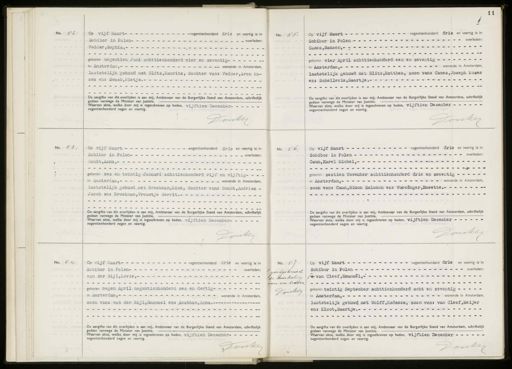 No. 52. Op vijf Maart---- - --negentienhonderd drie en veertig is is Sobibor in Polen- - - - - - - - - - - - - - - - - - ----overleden. Vedder, Sophia,- - - - - - - - - - - - - - - - - - - - - - - - - -- - - geboren negentien Juni achttienhonderd vier en zeventig- - - - - --- in Amsterdam,- - - - - - - - - - - - - - - - ---- wonende in Amsterdam laatstelijk gehuwd met Blitz, Maurits, dochter van: Vedder,Aron Mo- zes en: Swaab, Mietje.- - - - - - - - - - - - - - - - -- - - - - -- -- De aangifte van dit overlijden is aan mij, Ambtenaar van de Burgerlijke Stand van Amsterdam, schrifteljk gedaan vanwege de Minister van Justitie. Waarvan akte, welke door mij is ingeschreven op heden, vijftien December- - - - -- negentienhonderd negen en veertig Donker No. 55. Op vijf Maart - - - - - - - ----- negentienhonderd drie en veertig is in Sobibor in Polen-- - - - - - - - - - - - - - - ----- overleden: Canes, Samson,- - - - - - - - - - - - - - - - - - - - - - - - - - - -- geboren vier April achttienhonderd een en zeventig - - - - - - - -- in Amsterdam,- - - - - - - - - - - - - - - ---- wonende in Amsterdam. laatstelijk gehuwd met Blitz,Matthea, zoon van: Canes, Joseph Mozes en: Schellevis, Saartje.- - - - - - - - - - - - - - - - - - - - - -- De aangifte van dit overlijden is aan mij, Ambtenaar van de Burgerlijke Stand van Amsterdam, schrifteljk gedaan vanwege de Minister van Justitie Waarvan akte, welke door mij is ingeschreven op heden, vijftien December - - - - -- negentienhonderd negen en veertig Jonker No. 53 Op vijf Maart - - - - - - - - ----negentienhonderd drie en veertig is in Sobibor in Polen- - - - - - - - - - - - - - - - - - ---- overleden: Bondt,Anna,- - - - - - - - - - - - - - - - - - - - - - - - - --- - -- geboren zes en twintig Januari achttienhonderd vijf en vijftig- -- in Amsterdam,- - - - - - - - - - - - - - - ---- wonende in Amsterdam laatstelijk gehuwd. met Broekman, Lion, dochter van: Bondt,Andries - Jacob en: Broekman, Vrouwtje Gerrit.- - - - - - - - - - - - - - -- - - - - - - - - - - ---- -- --- - - - ------- De aangifte van dit overlijden is aan mij, Ambtenaar van de Burgerlijke Stand van Amsterdam, schrifteljk gedaan vanwege de Minister van Justitie. Waarvan akte, welke door mij is ingeschreven op heden, vijftien December- - - - -- negentienhonderd negen en veertig. Donken No. 56 Op vijf Maart - - - - - ------- negentienhonderd drie en veertig is in Sobibor in Polen - - - - - - - - - - - - - - - - -----overleden: Caun, Karel Michel,- - - - - - - - - - - - - -- - - - - - - - - - -- - geboren zestien November achttienhonderd drie en zeventig - - - - -- in Amsterdam,- - - - - - - - - - - - - - ----- wonende in Amsterdam, zoon van: Caun, Simon Salomon en: Vorsänger, Rosette.- - - - - - --- -- De aangifte van dit overlijden is aan mij, Ambtenaar van de Burgerlijke Stand van Amsterdam, schrifteljk gedaan vanwege de Minister van Justitie Waarvan akte, welke door mij is ingeschreven op heden, vijftien December - - - - -- negentienhonderd negen en veertig Donker No. 54. Op vijf Maart- - - - - - - - -----negentienhonderd drie en veertig is is Sobibor in Polen- - - - - - - - - - - - - - - - - -- overleden van der Bijl,Levie,- - - - - - - - - - - - - - - - - - - - - - - -- geboren negen April negentienhonderd zes en dertig- - - - - - - - -- in Amsterdam,- - - - - - - - - - - - - - ---- wonende in Amsterdam zoón. van: van der Bijl,Emanuel en: Acathan,Anna.------ - - - - - - - - - -- --- -- - ----- De aangifte van dit overlijden is aan mij, Ambtenaar van de Burgerlijke Stand van Amsterdam, schrifteljl gedaan vanwege de Minister van Justitie. Waarvan akte, welke door mij is ingeschreven op heden, vijftien December- - - - -- negentienhonderd negen en veertig. Douken No. 57 goedgekeurd de doorhaling van een letter. Vonkeg Op vijf Maart - - - - - - ------ negentienhonderd drie en veertig is in Sobibor in Polen - - - - - - - - - - - - - - - ----- overleden: /e van Cleef,Emanuél,-- - - - - - - - - - - - - - - - - - - - --