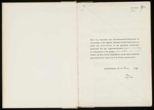 Stadsarchief Amsterdam, archieftoegang 5009, Archief van de Burgerlijke stand, inventarisnummer 7312, Algemene Akten, Akten, Registers van Algemene Akten, 1949-1961, 1997,1999, deel 01