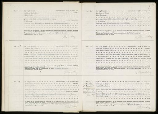 Gebruik tekstcoördinaten Transcriptie No. 22. Op vijf Maart- - - - - - - - ---- - negentienhonderd drie en veertig is in Sobibor in Polen- - - - - - - - - - - - - - - - - - ----overleden: Elias, Helen,- - - - - - - - - - - - - - - - - - - - - - - - - -- -- geboren zes Juni achttienhonderd zeventig- - - - - - - - - - - - - in Altona,- - - - - - - - - - - - - - - - ----- wonende in Amsterdam, dochter van: Elias,Moses Daniel en: Callmann, Malchen.- - - - - -- - - - - - -- - - - - --- ---- De aangifte van dit overlijden is aan mij, Ambtenaar van de Burgerlijke Stand van Amsterdam, schriftel gedaan vanwege de Minister van Justitle Waarvan akte, welke door mij is ingeschreven op heden, vijftien December- - - - -- negentienhonderd negen en veertig. Donken No. 23. Op vijf Maart - - - - - - ------ negentienhonderd drie en veertig is in Sobibor in Polen - - - - - - - - - - - - - - - - ---- overleden: Elte, Debora,- - - - - - - - - - - - - - - - - - - - - - - - - - -- - - geboren achttien Juli achttienhonderd vijf en tachtig - - - - - - --- in Deventer,- - - - - - - - - - - - - - - -----wonende in Amsterdam, dochter van: Elte, Joachim en: Roos, Judith.- - - - - - - - - - - -- - - - - - - - - - - - - - -------- - - - - - - - - - - De aangifte van dit overlijden is aan mij, Ambtenaar van de Burgerlijke Stand van Amsterdam, schriftelijk gedaan vanwege de Minister van Justitie. Waarvan akte, welke door mij is ingeschreven op heden, vijftien December - - - - -- negentienhonderd negen en veertig. Donken No. 25 Op vijf Maart- - - - - - - - - ----negentienhonderd drie en veertig is in Sobibor in Polen- - - - - - - - - - - - - - - - - --- overleden: Eliazer, Hartog,- - - - - - - - - - - - - - - - - - - - - - - - -- - - - ---- geboren vijftiën Januari achttienhonderd vijf en zeventig- - - - - in Amsterdam,- - - - - - - - - - - - - - ----- wonende in Amsterdam zoon van: Eliazer, Meyer Hartog en: Wertheim,Truitje. - - - - - -- - - -- - De aangifte van dit overlijden is aan mij, Ambtenaar van de Burgerlijke Stand van Amsterdam, schrifteljk gedaan vanwege de Minister van Justitie. Waarvan akte, welke door mij is ingeschreven op heden, vijftien December- - - - -- negentienhonderd negen en veertig. Donker No. 26 Op vijf Maart - - - - - - ------ negentienhonderd drie en veertig is in Sobibor in Polen - - - - - - - - - - - - - - - - ----- overleden: van Embden, Jacob David,- - - - - - - - - - - - - - - - - - - - -- -- geboren zes en twintig September achttienhonderd twee en zeventig -- in Gorinchem.-- - - - - - - - - - - - - ------ wonende in Amsterdam, laatstelijk gehuwd met Trijtel,Eleonora, zoon van: van Embden, David Hendrik en: Wolff,Saartje.- - - - - - - - - - - - - - - - - - - - - - - - - - -- --- De aangifte van dit overlijden is aan mij, Ambtenaar van de Burgerlijke Stand van Amsterdam, schrifteljk gedaan vanwege de Minister van Justitie. Waarvan akte, welke door mij is ingeschreven op heden, vijftien December - - - - -- negentienhonderd negen en veertig. Donker No. 24. Op vijf Maart- - - - - - - - ---- negentienhonderd drie en veertig is in Sobibor in Polen-- - - - - - - - - - - - - - - - --- overleden Elekan, Maurits, - - - - - - - - - - - - - - - - - - - - - - - - -- - geboren drie Februari achttienhonderd twee en zeventig- - - - - - - in Amsterdam,- - - - - - - - - - - - - - - - - -- wonende in Amsterdam, laatstelijk gehuwd met Lopes Caranga, Rebecca, zoon van: Elekan, - Jonas en: Polak, Leentje. - - - - - - - - - - - - - - - - - - - -- -- De aangifte van dit overlijden is aan mij, Ambtenaar van de Burgerlijke Stand van Amsterdam, schrifteljk negentdenhonderd negen en veertg. gedaan vanwege de Minister van Justitie. Waarvan akte, welke door mij is ingeschreven op heden, vijftien December- - - - -- Donken No. 27. T„Emden „lmden twee renvooiër en de doorhaling van twee woor den goedgekeurd. 6 Vookig Op vijf Maart - - - - - - - -----negentienhonderd drie en veertig is in Sobibor in Polen - - - - - - - - - - - - - - - ---- overleden: van Embder, Ruben,- - - - - - - - - - - - - - - - - - - - - - - -- - geboren achttien Mei achttienhonderd een en tachtig - - - - - - --- 1 in Assen,- - - - - - - - - - - - - - - - ---- wonende in Amsterdam, laatstelijk gehuwd met Kösters, Dora, zoon van: vanenbden, Lion ens Mossel,Keetje.- - - - - - - - - - - - - - - - - - - - - - - - -- - - - --- De aangifte van dit overlijden is aan mij, Ambtenaar van de Burgerlijke Stand van Amsterdam, schrifteljk — gedaan vanwege de Minister van Justitie. Waarvan akte, welke door mij is ingeschreven op heden, vijftien December - - - - -- negentienhonderd negen en veertig. Jonker