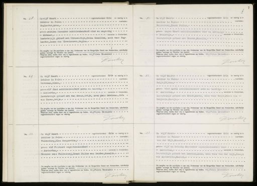 Gebruik tekstcoördinaten Transcriptie No. 28. Opvijf Maart - - - - - - - ------negentienhonderd drie en veertig is in Sobibor in Polen - - - - - - - - - - - - - - - - ----- overleden: Englander, Aron,- - - - - - - - - - - - - - - - - - - - - - - - - - geboren zestien November achttienhonderd vier en negentig - - - - -- in Alkmaar,- - - - - - - - - - - - - wonende in Amsterdam laatstelijk gehuwd met Nieuwendijk, Reina Rozalina, zoon van: Eng- lander, Isaac en: Vleeshouwer, Regina.- - - - - - - - - - - - - - -- - De aangifte van dit overlijden is aan mij, Ambtenaar van de Burgerlijke Stand van Amsterdam, schrifteljk gedaan vanwege de Minister van Justitie Waarvan akte, welke door mij is ingeschreven op heden, vijftien December - - - - -- negentienhonderd negen en veertig Donker No. 31. Op vijf Maart- - - - - - - - --- - - negentienhonderd drie en veertig is in Sobibor in Polen- - - - - - - - - - - - - - - - -- - - - - Overlee: „Falkenburg, Isaak Julius,- - - - - - - - - - - - - - - - - - - -- - - - - - - - geboren negen Maart achttienhonderd vier en zeventig- - - - - - -- in Brunswijk, - - - - - - - - - - - - - - - - -- wonende in Amsterdam, laatstelijk gehuwd met Bender, Rosalie. - - - - - - - - - - - - -- - - - - - -- - - -------- - - - - - - - - - - - - - - - - - - - - - - - - - - - - - - - -- De aangifte van dit overlijden is aan mij, Ambtenaar van de Burgerlijke Stand van Amsterdam, schriftelk gedaan vanwege de Minister van Justitie Waarvan akte, welke door mij is ingeschreven op heden, vijftien December- - - - -- negentienhonderd negen en veertig. Donker No. 29 Op vijf Maart - - - - - ------ negentienhonderd drie en veertig is in Sobibor in Polen -- - - - - - - - - - - - - - -- overleden Erwteman, Simon,- - - - - - - - - - - - - - - - - - - - - - - - - - - - - - --- -- - - - geboren elf Juni achttienhonderd zeven en tachtig - - - - - - - - -- in Amsterdam,- - - - - - - - - - - - - - --- wonende in Amsterdam, laatstelijk gehuwd met van Geens,Betje, zoon yan: Erwteman, Juda. en: Canes, Betje.- - - - - - - - - - - - - - - - - - - - - - - --- - - - - - - - - - - - - -- De aangifte van dit overlijden is aan mij, Ambtenaar van de Burgerlijke Stand van Amsterdam, schrifteljk gedaan vanwege de Minister van Justitie Waarvan akte, welke door mij is ingeschreven op heden, vijftien December - - - - -- negentienhonderd negen en veertig Donken No. 32 Op vijf Maart- - - - - - ------ negentienhonderd drie en veertig is in Sobibor in Polen- - - - - - - - - - - - - - - - - - ----overleden: Buijs, Hijman,- - - - - - - - - - - - - - - - - - - - - - - - - - - - geboren vier April achttienhonderd drie en tachtig- - - - - - - -- in Amsterdam,- - - - - - - - - - - - - - ----- wonende in Amsterdam, laatstelijk gehuwd met Swaab, Maria, zoon van: Buijs, Mozes en: -- Maijkels, Kaatje: - - - - - - - - - - - - - - - - - - - - - - - -- - - - - - - - - - - - - - - - - - - - - - - - - - - - - - -- -- De aangifte van dit overlijden is aan mij, Ambtenaar van de Burgerlijke Stand van Amsterdam, schriftelijl gedaan vanwege de Minister van Justitie. Waarvan akte, welke door mij is ingeschreven op heden, vijftien December- - - - -- negentienhonderd negen en veertig Donker No. 30. Op vijf Maart - - - - - ------ negentienhonderd drie en veertig is in Sobibor in Polen - - - - - - - - - - - - - - - - - - --- overleden: Falkenburg,Elsa Margaretha,- - - - - - - - - - - - - - - - - - -- - ---- geboren elf Februari negentienhonderd - - - - - - - - - - - - - -- in Amsterdam,- - - - - - - - - - - - - - ----- wonende in Amsterdam dochter van: Falkenburg, Isaak Julius en: Bender, Rosalie.- - - -- - - - - - - - - - - ------ - - --- De aangifte van dit overlijden is aan mij, Ambtenaar van de Burgerlijke Stand van Amsterdam, schriftelijk gedaan vanwege de Minister van Justitie Waarvan akte, welke door mij is ingeschreven op heden, vijftien December - - - - -- negentienhonderd negen en veertig. Dontien No. S3. Op vijf Maart- - - - - - - ------ negentienhonderd drie en veertig is in Sobibor in Polen-- - - - - - - - - - - - - - - - --- overleden: van der Bijl,Emanuel, - - - - - - - - - - - - - - - - - - - - - - - - - geboren vijf en twintig September negentienhonderd een- - - - - - -- in Amsterdam,- - - - - - - - - - - - - - ----- wonende in Amsterdam, laatstelijk gehuwd met Acathan, Anna, zoon van: van der Bijl, Joseph en: Agsteribbe, Rachel,- - - - - - - - - - - - - - - - - - - - - - - - - - - - - -- ---- - - -- - - De aangifte van dit overlijden is aan mij, Ambtenaar van de Burgerlijke Stand van Amsterdam, schriftejk gedaan vanwege de Minister van Justitie Waarvan akte, welke door mij is ingeschreven op heden, vijftien December - - - - - -- negentienhonderd negen en veertig. Donker