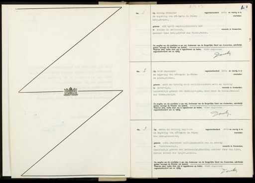 geboren acht en twintig Juni achttienhonderd acht en tachtig wonende in Amsterdam. in Beverwijk, laatstelijk gehuwd met Hamburger, Lea, zoon van: de Lieme,Emanuel en: Cohen,Naatje. De aangifte van dit overlijden is aan mij, Ambtenaar van de Burgerlijke Stand van Amsterdam, schrifteljk gedaan vanwege de Minister van Justitie. Waarvan akte, welke door mij is ingeschreven op heden, vier Augustus negentienhonderd een en vijftig. Doukg No. 3. Op zeven en twintig Augustus negentienhonderd drie en veertig is is de omgeving van OSwigcim in Polen overleden: 37 301 van Lier,Jeannette, 10 geboren acht September achttienhonderd een en zestig wonende in Amsterdam, in 's-Gravenhage, laatstelijk gehuwd met Rothschild, Maurice, dochter van: van Lier, Marcus Israel en: Spijer, Judith. De aangifte van dit overlijden is aan mij, Ambtenaar van de Burgerlijke Stand van Amsterdam, schriftelijk gedaan vanwege de Minister van Justitie. Waarvan akte, welke door mij is ingeschreven op heden, vier Augustus negentienhonderd een en vijftig. Donken
