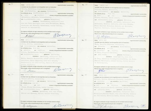 No. 21 Heden zeven mei negentienhonderd zevenenvijftig verscheen voor mij, ambtenaar van de burgerlijke stand van Amsterdam: Troost, Hendrikus, begrafenisondernemer, oud drieenvijftig jaar, wonende te Waddinxveen, die verklaarde, dat op drieentwintig april negentienhonderd zevenenvijftig te acht uur vijftien minuten, in de gemeente Amsterdam is overleden: Gelderblom, Albertus, beurtschipper, oud negenenveertig jaar, geboren te Bodegraven, wonende te Waddinxveen, echtgenoot van: „ van der Valk, Merrigje, zoon van: Gelderblom, Abram, overleden en: Verweij, Wilhelmina, zonder beroep, wonende te Waddinxveen. De aangever verklaarde uit eigen wetenschap van het overlijden kennis te dragen. Waarvan akte, welke overeenkomstig de wet is voorgelezen. AZoogra H Moost No. 6 Heden zeven mei negentienhonderd zevenenvijftig verscheen voor mij, ambtenaar van de burgerlijke stand van Amsterdam: Meijnen, Gerrit, aanspreker, oud achtendertig jaar, wonende te 1 die verklaarde, dat op vijf mei negentienhonderd zevenenvijftig te tlen uur nul minuten, in de gemeente Amsterdam is overleden: Penaat, Wilhelm, zonder beroep, oud eenentachtig jaar,. geboren te Deventer, wonende te Amsterdam, echtgenoot van: Dalhuisen, Hendrika Lubberta, zoon van: Penaat, Franz Heinrich Christoph Wilhelm en: Triebart, Engelina Gerritjen, beiden overleden. De aangever verklaarde uit eigen wetenschap van het overlijden kennis te dragen. Waarvan akte, welke overeenkomstig de wet is voorgelezen. DZaagrmo Cf Meijzen No. 23 Heden zeven mei negentienhonderd zevenenvijftig verscheen voor mij, ambtenaar van de burgerlijke stand van Amsterdam Amsen, Petrus, aanspreker, oud negenenzestig jaar, wonende te Amsterdam, E negentienhonderd zevenenvijftig die verklaarde, dat op vier mei „ te achttien uur vijftien minuten, in de gemeente Amsterdam is overleden: Meijer, Bartholomeus, zonder beroep, oud zesentachtig jaar, geboren te Amsterdam, wonende te Amsterdam, echtgenoot van: Duijs, Susanna Geertruida, gehuwd geweest met: Wassenaar, Maria Euphemia, zoon van: Meijer, Bartholomeus en: Naaldenberg, Susanna Philippina, beiden overleden. De aangever verklaarde uit eigen wetenschap van het overlijden kennis te dragen. Waarvan akte, welke overeenkomstig de wet is voorgelezen. DZoogrna J. Amsen No. 26 Heden zeven mei negentienhonderd zevenenvijftig verscheen voor mij, ambtenaar van de burgerlijke stand van Amsterdam Kost, Cornelis Johannes, aanspreker, oud zeventig jaar, wonende te Ouder-Amstel, die verklaarde, dat op zes mei negentienhonderd zevenenvijftig te negentien uur vijftig minuten, in de gemeente Amsterdam is overleden. de Jong, Siegfried Gerardus, oud drie weken, geboren te Oostzaan, wonende te Ouder-Amstel, zoon van: de Jong, Wilhelmus Joseph,metaalbewerker, en: Beek, Johanna Wilhelmina, zonder beroep, beiden wonende te Ouder-Amstel. De aangever verklaarde uit eigen wetenschap van het overlijden kennis te dragen. Waarvan akte, welke overeenkomstig de wet is voorgelezen. Vhoagemag J Kr No. Heden zeven mei negentienhonderd zevenenvijftig