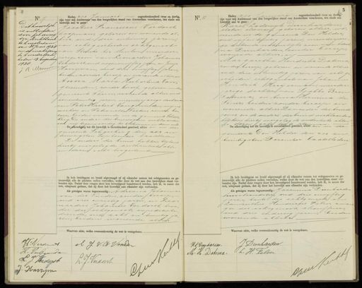 o No. 1 I. Dit huwelijk is ontbouden door het vonnig der Bechtbank te Amsterdam van 30 Juni 1938 en de inschrijving te binstersam heden 13 Augustus 1938 J RMuun Heden zes Januari negentienhonderd twee en dertig zijn voor mij Ambtenaar van den burgerlijken stand van Amsterdam verschenen, ten einde een 9 o huwelijk aan te gaan: Jacobus Franciscus Verdorst, koopman, geboren en wonende al¬ hier, oud drie entwintg jaren, van echt gescheiden echtgenoot van Stienke ter Meulen, meerder jarige zoon van Leonardus Johannes Verdorst oud negenenvijftig jaren, en Jansje Harryvan, oud drie envijftig jaren beiden zonder beroep in wonende alhier, en Anna Maria Hubertina Van¬ geninden, zonder beroep, geboren in de gemeente Thorn, wonende alhier oud eenentwintig jaren, meerderjarige dochter van Peter Hubert Vangeninden, mijn, werker, en Pehronella Peeters, zonder be„ roep, beiden wonende in de gemeente Schaen berg De ouders des bruidegoms verklaarden voor mij tegenwoordig toe te stemmen in dezen echt De afkondiging tot dit huwelijk is onverhinderd geschied, alhier en in de gemeente Schaesberg den zes en twintigsten September laatstleden De ouders der bruid hebben blijken. hierbij overgelegde authentieke akte in dezen echt toegeslemd. Ik heb bruidegom en bruid afgevraagd of zij elkander nemen tot echtgenooten en ge- trouwelijk alle de plichten zullen vervullen, welke door de wet aan den huwelijken staat ver- bonden zijn. Nadat deze vragen door hen bevestigend beantwoord werden, heb ik, in naam der wet, uitspraak gedaan, dat zij door het huwelijk aan elkander zijn verbonden. Als getuigen waren tegenwoordig: Adriana Joharma van der Vinden, zonder beroep, oud vier enzestig jaren, en heo nardus Johannes Verdorst, broe der des echtgenoot, expeditiebe diende, oud acht en twintig ja ren, beiden wonende alhier No. 8 Heden zes Januari negentienhonderd twee en dertig, zijn voor mij Ambtenaar van den burgerlijken stand van Amsterdam verschenen, ten einde een huwelijk aan te gaan: Karel Lodewijk Dinharden, sloker-olieman, geboren alhier, wo- nende in de gemeente Den Helder, oud vijf en twintig jaren, meerderjari, ge erkende naturlijke zoon van Adria: na Dunharden, zonder beroep, wonende alhier, Margaretha Hendrika Datema, zonder beroep, geboren en wonende alhier oud drie en twintig jaren, van echtge scheiden echtgenoote van Johannes Hendrik Huyj erman, meerder„ jarige dochter van Sjabbe Bron Tatema, en Anna Hermma de Steur, beiden zonder beroep en wonende alhier. Demoeder des bruide Coms en de ouders der bruid verklaarden blijkens hierbij overgelegde authentieke akten, in dezen echtt wet stemmen. De afkondiging tot dit huwelijk is onverhinderd geschied, alhier en ine gemeente Den Helder den zes en twintigsten December laatstleden, Ik heb bruidegom en bruid afgevraagd of zij elkander nemen tot echtgenooten en ge- trouwelijk alle de plichten zullen vervullen, welke door de wet aan den huwelijken staat ver- bonden zijn. Nadat deze vragen door hen bevestigend beantwoord werden, heb ik, in naam der wet, uitspraak gedaan, dat zij door het huwelijk aan elkander zijn verbonden. Als getuigen waren tegenwoordig: Jacomina Dunharden huishroudster, oud drie envijftig jaren, tante des echtg enooks, en — Lamberthus Hendricus Felser, zwa ger des echtgenook, chanfferir oud drie endertig jaren, beiden wonende alhier Waarvan akte, welke overeenkomstig de wet is voorgelezen. H: Verdet A J V.d Vander H. VanGeunda