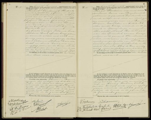 No. 9 Heden twaalf Januari negentienhonderd twee en derti zijn voor mij Ambtenaar van den Burgerlijken stand van Amsterdam verschenen, ten einde ee huwelijk aan te gaan: Michiel Vredenrijk Redert, assistent- opotheker, geboren in de ge meente Dordrecht, wonende alhier, oud zes en twintig jaren, meerder jarige zoon van Johannes Phi¬ lippus Kedert, oud zestig jaren broodbakker en Cornelia Adriana van Driel, oud zevenenvijftig jaren, zonder beroep, beiden wonende in de gemeente Dordrecht, en Egberta Dirkje Johanna Arna Alderse Baes, zonder beroep, geboren en wonende alhier, oud acht en twintig jaren, meerderjarige dochter van Johannes Alderse Bals, over„ leden en Anna Rosier, oud negen envijftig jaren, zonder beroep, wonende alhier. De ouders desbundegomsen de moe„ der der bruid verklaarden voor mij tegen woordig toe te semmen in dezen echt.- De afkondiging tot dit huwelijk is onverhinderd geschied, alhier den trie ee den dezer maand. Ik heb bruidegom en bruid afgevraagd of zij eikander nemen tot echtgenooten en ge- trouwelijk alle de plichten zullen vervullen, welke door de wet aan den huwelijken staat ver bonden zijn. Nadat deze vragen door hen bevestigend beantwoord werden, heb ik, in naam der wet, uitspraak gedaan, dat zij door het huwelijk aan elkander zijn verbonden. Als getuigen waren tegenwoordig: Theodorus Breemer zwager des echtgenoots, boterhande laar, oud drie en dertig jaren, wonende in de gemeente Dord„ recht en Adrianus Cornelis Redert broeder des echtgenoots, auto-teck nicus, oud een en dertig jaren wonende in de gemeente '1 Graven hage Waarvan akte, welke overeenkomstig de No. 10 Heden twaalf Januari negentienhonderd twee en dertig, W zijn voor mij Ambtenaar van den burgerlijken stand van Amsterdam verschenen, ten einde een huwelijk aan te gaan: Hugo Fortun, adjmct secre taris eener Kamer van Koophandel, geboren n de gemeente Dordrecht, wo„ nende alhier, oud drie en dertig ja ren, meerderjarige zoon van Bernard Fortuin, overleden en Tekla Löb„ schen, zonder beroep, wonende m de ge- meente s. Gravenhage, en Elisabeth Maria Berkelbach van der Sprenkel, zonder beroep, geboren in de gemeente Utrecht wonende alhier, oud zeven en twintig jaren meerderjarige dochter van Jan Berkel bach van der Sprenkel overleden en Eli¬ sabeth Leonora Klerk de Kens, oud¬ zestig jaren, zonder beroep, wonende alhier. De moeder derbruid verklaarde voor mij tegenwoordig toe te stemmen in dezen echt. De afkondiging tot dit huwelijk is onverhinderd geschied, alhier den tweeden dezer maand. Ik heb bruidegom en bruid afgevraagd of zij elkander nemen tot echtgenooten en ge- trouwelijk alle de plichten zullen vervullen, welke door de wet aan den huwelijken staat ver- bonden zijn. Nadat deze vragen door hen bevestigend beantwoord werden, heb ik, in naam der wet, uitspraak gedaan, dat zij door het huwelijk aan elkander zijn verbonden. Als getuigen waren tegenwoordig: Gerrit Mannoury hoogleeraar, oud vier en zestig„ Een, en Harlog Ruben, Vorstt zonder beroep, oud vijf en vijfts jaren wonende de eerste getuige alhier, de tweede in de gemeente 15. Gravenhage. Waarvan akte, welke overeenkomstig de wet is voorgelezen.- 1 M.v. Rederten A Roon E PJ A. Mlotan Jonde