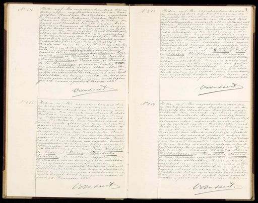 No 211. Heden, vijf Mei negentienhonderd drie en dertig, is door mij Ambtenaar van den Bur„ gerlijken stand van Amsterdam ingeschreven ten verzoeke van Antonius Josephus Hubertus Maria van Baar, arts, wonende te Tilburg, ge„ huwd met Elisabeth Camille Cornelie Marie Ghislaine Baronesse de Heusch de la Zangrije zonder beroep, wonende mede aldaar een bij ex ploit van den deurwaarder Izaak Harshagen, alhier op heden beteekend en ter inschrijving in de registers van den Burgerlijken stand overgelegd afschrift van een bij verstek gewezen vonis der Arrondissements. Rechtbank te Breda van een en twintig Maart negentienhon„ derd drie en dertig, waarbij is uitgesproken de ontbinding door echtscheiding van het huwelik tusschen: Antonius Josephus Hubertus Maria van Baar en Elisabeth Camille Cornelie Marie Ghislame Baronesse de Heusch de la Tangrije op zeven en twintig October negentienhonderd dertien alhier voltrokken tevens is hierbij overgelegd eene verklaring van den griffier der voormelde RRechtbank, van zeven April laatstleden, ten bewijze strekkende, dat op zijn register geene aanteekening van verzet tegen gemeld vonnis is geschied. Waarvan akte. van soest. No 213 Heden vijf Mei negentienhonderd drie en dertig, is door mij Ambtenaar van den Burgerlijken stand van Amsterdam inge schreven ten verzoeke van Hendrik Kost metaalbewerker wonende alhier, gehuwd met Anna Wilhelmima Flaman zonder beroep wonende mede alhier, een by exploit van den deurwaarder Johan Durwou, alhier op reden beteekend en ter imschrijving in de re gisters van den Burgerlijken stand overge legd afschrift van een op tegenopzaak genezen vonnis der Arrondissements Rechtbank te Amsterdam. van twintig Maart negen tienhonderd drie en dertig, waarbij is uitge sproken de ontbinding door echtscheiding van het huwelijk tusschen: Hendrik Kolst en Anna Wilhelmina Flaman op drie Maart negentienhonderd twintig alhier voltrokken Tevens is hierbij over gelegd eene verklaring van den griffier der voormelde Rechtbank, van vijfen twin tig April laatstleden, ten bewijze strek kende, dat op zijn register geene aanteekening van ingesteld hooger beroep tegen ge meld vonnis is geschied. Waarvan akte Vansoest No 212 Heden vyf Mei negentienhonderd drie en dertig, is door mij Ambtenaar van den Burgerlijken stand van Amsterdam, inge„ schreven ten verzoeke van Maria Hendrika Postma zonder beroep, wonende te Malan. in Nederlandsch Oost Indië, gehuwd met Jan Wilhelm de Vries, kantoorbediende, wo nende mede aldaar, een bij exploit van den deurwaarder Izaak Harshagen alhier op heden beteekend en ter inschrijving in de registers van den Burgerlijken Htand overgelegd afschrift van een top tegenspraat gewezen vonnis der Arrondissements- Recht, bank te Amsterdam, van negentien December nnegentienhonderd twee en dertig, waarbij is uitgesproken de ontbonding, door echtscheiding van het huwelijk tusschen: Jan Wilhelm de Vries en Maria Hendrika Postma op achttien Augustus negen tienhonderd een en twintig alhier voltrokken Tevens is hierbij overgelegd eene verklaring van den griffier der voormelde Rechtbank, van acht Apoil laatstleden, ten bewijze strekkende dat op zijn register geene aanteekening van in gesteld hoogen beroep tegen gemeld vonnis is geschied Waarvan akte Vansoert No 214 Heden vijf Mei negentienhonderd drie en dertig, is door mij, Ambtenaar van den Burgerlijken stand van Amsterdam, inge schreven ten verzoeke van Maria Wilhel„ mina Hendrika Aarsen, zonder beroep wonende alhier, gehuwd met Frans slagt schoenmaker, wonende mede alhier een bij exploit van den deurwaarder Izaak Harshagen, alhier op heden beteekend en ter inschrijving in de registers van den Burgerlijken stand overgelegd afschrift van een bij verstek gewezen vonnis der Arrondissements- Rechtbank te Amsterdam van twaalf December negentienhonderd Twee en dertig, waarbij is uitgesproken de ontbinding door echtscheiding van het huwe¬ lijk tusschen: Frans Slagt en Maria Wilhelmina Hendrika Aarsen op tien September negentienhonderd negen tien alhier voltrokken tevens is hierbij overgelegd eene verklaring van den griffier der voormelde Rechtbank van negen en twintig Maart laatstleden, ten bewijze strekkende, dat op zijn register geene aantee kening van gedaan verzet tegen gemeld vonnis is geschied. Waarvan akte.- Van soest