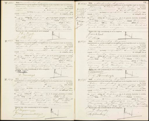 No. 4885 Heden zevenentwintig Augudus negentienhonderd een en dertig verschenen voormij Ambtenaar van den burgerlijken stand van Amsterdam Johannes Carolus van Kerpt van beroep — — oud tweeentwintig Jaren, wonende aanspreker alhier. en Johannes Ostendorp. — -van beroep aanspreker oud vijfenveertig jaren wonende alhier — die verklaarden, dat op zesentwintig dezer des na middags ten half vier ure, in de gemeente Amsterdam is overleden Peter Johannes Roekebakker zonder beroep , wonende alhier oud zevenenzeventig jaren-, geboren te Har derwijk echtgenoot van Gezina Maria Driessen weduwnaar van Antje Alida Maria Geerts, zoon van Abrahum Koeke bakker en Maria Raaijen beiden overleden Waarvan akte, welke overeenkomstigde wet is voorgelezen. J.C. v. Herpt I. Gn 2 No. 4891 Goedgekeurd de denhaling van vijf gedrukte woorden. Jw v a Lans J Vurny Jamnn Heden achtentwintig Augustus negentienhonderd een en dertig verschenen voor mij Ambtenaar van den burgerlijken stand van Amsterdam Johannes Wilhelm van der Zant van beroep oud tweeenvijftig Jaren, wonende aanspreker en Jacobus Sang alhier — van beroep aanspreker oud zevenenzestig Jaren — wonende alhier die verklaarden, dat op vijfentwintig dezer des voor middags ten half negen ure, in de gemeente Amsterdam is overleden Johanna Blokker.— zonder beroep echtgenoote van -, wonende Gerardus Jacobus op de Vos werkman, Bboren beiden wonende alhier, is bevallen van een kind dat zij als levenloos aangeven Waarvan akte, welke overeenkomstig de wet is voorgelezen. Jm v d. Zant J 4/ No 4887 No Heden zevenentwintig Augustus negentienhonderd een en dertig verschenen voor mij Ambtenaar van den burgerlijken stand van Amsterdam, Peije Schaafsma.van beroep aanspreker oud tweeenvijftig jaren, wonende alhier. en Gysbert Toorenburgh. - van beroep aanspreker oud eenenzeventig jaren wonende alhier — — die verklaarden, dat op zesentwintig dezer des na middags ten half acht ure, in de gemeente Amsterdam is overleden Johanna Augusta Maria van Roosendael. zonder beroep wonende alhier oud negentien jaren, geboren te Blord in Nederlandsch Indië, dochter van Johan van Roosendael inspecteur bij den dienst van het Boschwezen in Nederlandsch Indië en Everdina Dorothea Brouwer zonder beroep beiden wonende alhier Waarvan akte, welke overeenkomstig de wet is voorgelezen. F Schaaf Man vf toorenburgh G. o 4893 No Heden achtentwintig Augustus negentienhonderd een en dertig verschenen voor mij Ambtenaar van den burgerlijken stand van Amsterdam: van beroep Petrus Johannes van Muijen, oud negenenveertig jaren, wonende — aanspeeker en Gijsbert Toorenburgh van beroep aanspreker oud eenenzeventig jaren wonende alhier — die verklaarden, dat op — zes en twintig dezer des na middags ten half twaalf ure, in de gemeente Amsterdam is overleden Jacob Dirk Roedam wonende alhier zonder beroep oud negenenzeventig jaren, geboren te Buren weduwnaar van Hermina van Ravestijn Gerdivra zoon van Dirk Koedam en Bronk beiden overleden Aarvan akte, welke overeenkomstig de wet is voorgelezen. dansen Julmang 5 G Poorenburgh 9 No. 4889 Heden achtentwintig Augustus negentienhonderd een en dertig verschenen voor mij Ambtenaar van den burgerlijken stand van Amsterdam, Johannes Antonius Jagevuur van beroep oud vierenveertig jaren, wonende — aanspreker en Johannes Ingwersen alhier van beroep aanspreker oud negenenvijftig Jaren, wonende alhier —die verklaarden, dat op zesentwintig dezer des na middags ten tien ure, in de gemeente Amsterdam is overleden Johanna Jacoba van Schack zinder beroep wonende alhier oud zesenzestig jaren geboren te Mijdrecht echtgenoote van Gerrit van Eijk dochter van Gerrit van Schaik: en Petronella van Steenderen, beiden overleden Aarvan akte, welke overeenkomstig de wet is voorgelezen. J A Vagevem J: Ingenerzen alg 2/7 No. 4895 Heden achtentwintig Augustus — negentienhonderd een en dertig verschenen voor mij Ambtenaar van den burgerlijken stand van Amsterdam; Spangenberg van beroep Jo han oud achtenviftig jaren, wonende koster en Barend Poorenburg alhier - van beroep aanspreker oud negenenzeventig jaren, wonende alhier die verklaarden, dat op zevenentwintig dezer des voor middags ten half tien ure, in de gemeente Amsterdam is overleden Alida Helena Schrmid , wonende alhier zonder beroep oud vieren veertig jaren, geboren te Sloter in Noordholland echtgenoote van Johannes Franciscus Arnoldus Harmsen dochter van Cornelis Julius, Schidt en Dorothea Johanna Wilhelmina sche beiden zonder beroep en worend alhier Waarvan akte, welke overeenkomstig de wet is voorgelezen „ Spangenberg Jun n B. Troemberrg