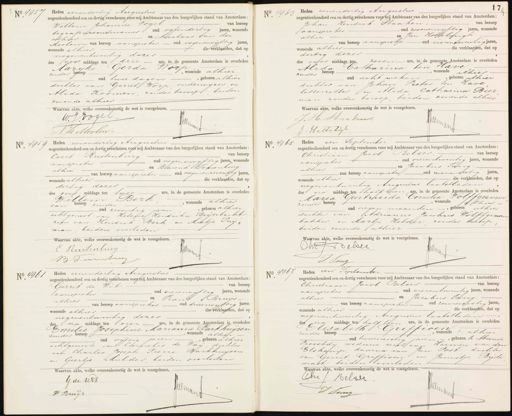 Jen I. Vang o 4961 Heden eenendertig Augustus negentienhonderd een en dertig verschenen voor mij Ambtenaar van den burgerlijken stand van Amsterdam: van beroep Gerrit de Wit oud vierenvijftig jaren, wonende aanspreker en Frans Bruijs alhier van beroep aanspieker oud vrieenviftig jaren, die verklaarden, dat op