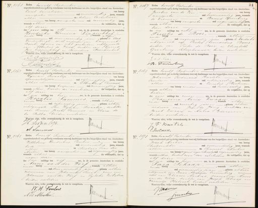 oud eenenveertig jaren, wonende bode — en Nicolaas van der alhier. Moolen van beroep aanspieker oud negenenvijftig Jaren wonende alhier die verklaarden, dat op negen dezer des na middags ten vijf ure, in de gemeente Amsterdam is overleden Anne van der Werk wonende alhier zonder beroep — d oud drieenzeventig jaren, geboren alhier weduwnaar van Johanna Smit zoon van Johannes van der Werf en Sytske Zeilstra, beiden overleden Waarvan akte, welke overeenkomstig de wet is voorgelezen. W.H Coulus Iug N Ed Moolen han No 51 14 Heden twaalf September negentienhonderd een en dertig verschenen voor mij Ambtenaar van den burgerlijken stand van Amsterdam van beroep Joseph Markus, boekdrukker oud zevenendertig jaren, wonende en Samuel Markus alhier van beroep vergeant majoor ziekenverplegen oud negenendertig jaren, wonende alhier beiden zoon der overleden de verklaarden, dat op