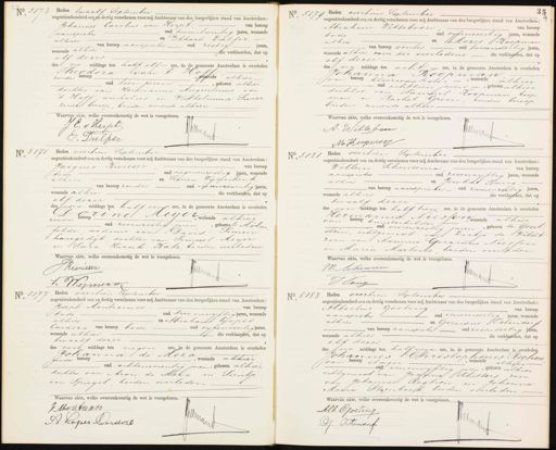 felde weduwe van David Simon hangedik dochter van Samvel Meyer en Sara Hirsch Ratz beiden overleden Waarvan akte, welke overeenkomstig de wet is voorgelezen. JKwieser Jman .. No. 5181 Heden veertien September negentienhonderd een en dertig verschenen voor mij Ambtenaar van den burgerlijken stand van Amsterdam Willem Schensema van beroep — : oud zesenvyftig jaren, wonende aanspreker en Jacobus Rang alhier van beroep aanspreker oud zevenenzertig jaren, wonende alhier die verklaarden, dat op twaalf dezer des voor middags ten half tien ure, in de gemeente Amsterdam is overleden Hermanus Niessen ouende alhier van beroep hunstschilder oud vierenzestig jaren, geboren te Yssel stein, echtgenoot van Dirkje de Wildt S zoon van Marinus Gerardus Niessen en Maria Martens beiden overleden Waarvan akte, welke overeenkomstig de wet is voorgelezen. M Schencer Vring I Vang No 5177 N. 7 Heden veertien September negentienhonderd een en dertig verschenen voor mij Ambtenaar van den burgerlijken stand van Amsterdam Joseph Montezinos, van beroep oud drieenvijftig Jaren, wonende bode alhier en Abraham Lopes Cardozo van beroep bode oud vijfenveertig Jaren — wonende alhier die verklaarden, dat op twaalf dezer — des voor middags ten negen ure, in de gemeente Amsterdam is overleden Johanna de Meza zonder beroep —, wonende alhier — oud achtenzeventig jaren, geboren alhier dochter van Aron de Meza en Sientje van Spiegel beiden overleden Waarvan akte, welke overeenkomstig de wet is voorgelezen. J Monbrinks J 1/ 4/1 A Lopes Cordozo Y No 5182 14 Heden veertien September negentienhonderd een en dertig verschenen voor mij Ambtenaar van den burgerlijken stand van Amsterdam Albertus Goeting.— van beroep oud eenenveertig Jaren, wonende aanspreker alhier en Gerardus Ostendorp van beroep aanspieke oud zesendertig jaren, wonende alhier die verklaarden, dat op elf dezer des na middags ten half negen ure, in de gemeente Amsterdam is overleden Johannes Christophorus Regtien van beroep slager wonende alhier —
