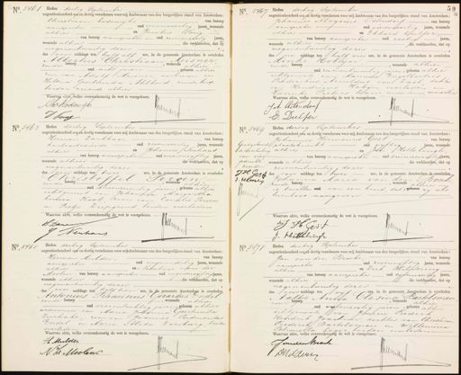J H Eert J f J. Hbetteling 5465 No. Heden dertig September negentienhonderd een en dertig verschenen voor mij-Ambtenaar van den burgerlijken stand van Amsterdam van beroep Herman Mulder, oud negenendertig jaren, wonende aanspreker en Nicolaas van der alhier Moolen van beroep aanspreker oud negenenviftig jaren wonende alhier. — — —die verklaarden, dat op negenentwintig dezer des voor middags ten half tien ure, in de gemeente Amsterdam is overleden Antonius Franciscus Gerardus Onder zonder beroep wonende alhier oud vierentachtig jaren geboren alhier weduwnaar van Maria Johanna Geertruida Zurhake, zoon van Joannes Perdinandus Endel en Maria Alida Doesburg beiden overleden. Waarvan akte, welke overeenkomstig de wet is voorgelezen. H Mulder J M 6/ N d Moolen No 5471 Heden dertig September negentienhonderd een en dertig verschenen voor mij Ambtenaar van den burgerlijken stand van Amsterdam van beroep Jan van den Broeke, „ oud zesenvijftig jaren, wonende aanspreker en Dirk Blildering alhier. van beroep aanspreker oud vijfenveertig jaren,