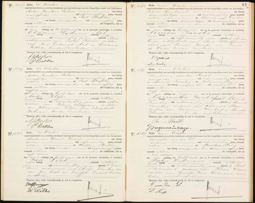 fo: 555 N 7 Heden zes October negentienhonderd een en dertig verschenen voor mij Ambtenaar van den burgerlijken stand van Amsterdam: van beroep Anton Jacobus Belser oud vierenvijftig jaren, wonende — aanspreker en Piet Bakker achie van beroep aanspreker oud eenenvijftig jaren — wonende alhier —die verklaarden, dat op vier dezer des na middags ten half twaalf ure, in de gemeente Amsterdam is overleden Clasina Catharina Aal zonder beroep— „wonende alhier oud eenenzestig jaren, geboren alhier echtgenoote van Pieter Römer dochter van Jan Lodewijk Aal en Geerdina Kitsz beiden overleden Waarvan akte, welke overeenkomstig de wet is voorgelezen. Belger Jni P Bakkee 1 No Heden zeven October negentienhonderd een en dertig verschenen voor mij Ambtenaar van den burgerlijken stand van Amsterdam: 1 van beroep Elias Goudsmit oud negenendertig jaren, wonende diamantslijper en David van Emden alhier van beroep diamantslijper oud drieenzestig jaren, wonende alhier die verklaarden, dat op zes dezer — des na middags ten half vier ure, in de gemeente Amsterdam is overleden Simon Jacobs. wonende alhier zonder beroep oud vijfenzeventig jaren, geboren te 's Graven hage, echtgenoot van Sara Schuitevoerder