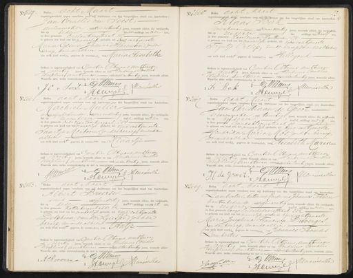 No 2659 Heden cht Maart negentienhonderd negen verscheen voor mij Ambtenaar van den burgerlijken stand van Amsterdam: Jan Cornelis van Loest, stoelenmaker, oud drie entwintig jaren, wonende alhier, die verklaarde, dat op heden des voormiddags ten vier ure, 1 17. in deze gemeente Egelantiersstraat 10. is geboren een kind van het vrouwelijk geslacht, uit zong echtgenoote e Karia Gesina Johanna Hareman, zonder beroep, wonende alhier aan welk kind worden gegeven de voornamen van Maria Elisabeth Gedaan in tegenwoordigheid van Gautier Oltmans ambtenaar oud veertig jaren, wonende alhier en van Hendricus Cornelis Wesselius ambtenaar oud acht en twintig jaren, wonende alhier. Waarvan akte, welke overeenkomstig de wet is voorgelezen. 2G Oetman 1 Meaagéchalla J.C. v. Soesbe HC Weseli No 2665 Heden acht Maart — — 23. negentienhonderd wegen verscheen voor mijAmbtenaar van den burgerlijken stand van Amsterdam: Hlaas Bak werkman, oud verenveertig jaren, wonende alhier, die verklaarde, dat op zesdezer des middags ten traalf ure, — 41 in deze gemeente Haarlemmer Houttuinen 17/ is geboren een kind van het vrouwelijk geslacht, uit zijne echtgenoote Trijntje Ortlep, zonder beroep wonende alhier, aan welk kind wordt gegeven de voornaam van Hillegoud Gedaan in tegenwoordigheid van Gautier Oltmans, ambtenaar oud veertig jaren, wonende alhier en van Hendricus Cornelis Wesselius, Ambtenaar oud achtentwintig jaren, wonende alhier Waarvan akte, welke overeenkomstig de wet is voorgeleen Gevtm 6 Meingechalla K Bak 3 HC Wessel No 2661 Heden acht Marul negentienhonderd negen verscheen voor mij Ambtenaar van den burgerlijken stand van Amsterdam: Wachiel Muller mag zijnbediende, oud drieendertig jaren, wonende alhier, die verklaarde, dat op zevendezer dena middags ten tien ure, in deze gemeente oude zijds Voorburgral 250 is geboren een kind van het vrouwelijk geslacht, uit zijne echtgenoote Saartje Miiboom, zonder beroep, wonende alhier aan welk kind wordt gegeven de voornaam van Slaartje Gedaan in tegenwoordigheid van Cautier Oltmans, ambtenaar oud veertig jaren, wonende alhier en van Hendricus Cornelis Wesselius ambtenaa oud achten twintig jaren, wonende alhier. Waarvan akte, welke overeenkomstig de wet is voorgelezen. 1 J Son G Oltns H Cureselis Rlaarnelk 111 4997 No 266 Heden acht Maart negentienhonderd negen verscheen (toor mij Ambtenaar van den burgerlijken stand van Amsterdam: Jan Christiaan de Groot. tigarenmaker, oud twintig jaren, wonende alhier, die verklaarde, det op vijf dezer, den a middags ten vijf ure, in deze gemeente Gondsbroemstraat 90. is geboren een kind aan het vrouwelijk geslacht, uit zijne echtgenoote Hendrika Maria Mos, zonder beroep, wonende alhier aan welk kind worden gegeven de voornaen van Elisabeth oaria Gedaan in tegenwoordigheid van Gautier Oltmans, ambtenaar oud veertig jaren, wonende alhier en van Hendricus Cornelis Wesseliusambtenaar oud achtentwintig jaren, wonende alhier. Waarvan akte, welke overeenkomstig de wet is zoorge vlmm Wenagéchalla J de Groot. O.b 3 HC Weselis No 2663 Heden acht Maart negentienhonderd negen verscheen voor mij Ambtenaar van den burgerlijken stand van Amsterdam: Albert Broerse. smid, oud vijfendertig jaren, wonende alhier, die verklaarde, de voormiddags ten acht ure, dat op heden in deze gemeente Kottenburgerkade 64 is geboren een kind van het vrouwelijk geslacht, uit zijne echtgenoote Dolphina van der Giessen, zonder beroep, wonende alhier van welk kind wordt gegeven de voornaam van AntjeGedaan in tegenwoordigheid van Gautier Oltmans, ambtenaar oud veertig jaren, wonende alhier en van Hendricus Cornelis Wesselius ambtenaar ou achtentwintig jaren, wonende alhier. Waarvan akte, welke overeenkomstig de wet is voorgelezen. G Oltman A Brooize Mlenagechella 3H. C Wesel No 266 Heden acht Maart 9 negentienhonderd negen verscheen voor mij Ambtenaar van den burgerlijken stand van Amsterdam: Lambertus Antonius Hendricus Johannes Sebben Kantoorbediende, oud vijfenveertig jaren, wonende alhier, die verklaarde, dat op zesdezen de namiddags ten vier ure, in deze gemeente langeLeidschednarsstraat 22 is geboren een kind van het mannelijk geslacht, uit zijne echtgenoote Maria Josephina Francisca Diverges, zon der beroep, wonende alhier aan zelk kind worden gegeven de voornamen van Johannes Thomas Lambertus Gedaan in tegenwoordigheid van Gautier Oltmans, ambtenaar oud veertig jaren, wonende alhier en van Hendricus Cornelis Wesselius ambtenaan oud achtentwintig Jaren, wonende alhier. Waarvan akte, welke overeenkomstig de wet is voorgelezen. Vanitter , Olnn Heivenad Hnancela