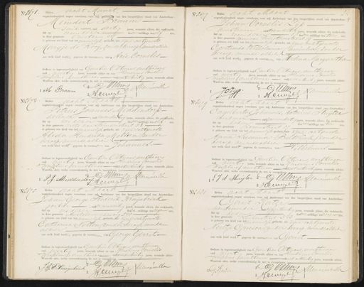 No 2671 Heden Vacht Maart negentienhonderd negen verscheen voor mij Ambtenaar van den burgerlijken stand van Amsterdam: Meindert Braam smid oud dertig jaren, wonende alhier, die verklaarde, in derte gemeente Overtoom 51 des voormidags terelf ure, dat op zevendezer is geboren een kind van het annelijk geslacht, uit zijne echtgenoote Margje de Rooij, zonder beroep, wonende alhier aan welk kind worden gegeven de voornamen van Arie Cornelis Gedaan in tegenwoordigheid van Gautier Oltmans, ambtenaar oud veertig jaren, wonende alhier en van Hendricus Cornelis Wesselius, Ambtenaar oud achtentwintig jaren, wonende alhier. Waarvan akte, welke ovoreenkomstig de wet is voorgelezend G: Outm Minagéchalla M. Braum 3 HC Wesel No 2674 Heden acht Mdaat 24 negentienhonderd negen verscheen voor mij Ambtenaar van den burgerlijken stand van Amsterdam: Johan Cornelis Ly ambtenaar, oud drieendertig jaren, wonende alhier, die verklaarde, dat op zevendezer des voormiddags ten twee ure, in deze gemeente Geven van Grinstererstraat 19 is geboren een kind van het vrouwelijk geslacht, uit zijne echtegenoote Geertruida Wilhelmina Caminha, zonder beroep, wonende alhier aan welk kind worden gegeven de voornamen van Helena Margaretha Gedaan in tegenwoordigheid van Gautier Oltmans, ambtenaar oud veertig jaren, wonende alhier en van Hendricus Cornelis Wesselius ambtenaar oud acht en twintig jaren, wonende alhier. Waarvan akte, welke overeenkomstig de wet is voorgelezen. DOimm 1 JC Zijp. 3 H. Eereepl Hlenschallk E 164B No 1 Heden acht Maaat negentienhonderd negen verscheen voor mij Ambtenaar van den burgerlijken stand van Amsterdam: Petrus Joannes Middendorp- Kellnca oud enendertig jaren, wonende alhier, die verklaarde dat op zis dezer des voormiddags ten elf ure, in deze gemeente eerste van Shindenstraat 53 is geboren een kind van het mannelijk geslacht, uit zijne echtgenoote Elida Hendrika Mollien, zonder beroep, wonende alhier aan welk kind wordt gegeven de voornaam van Johannes. Gedaan in tegenwoordigheid van Gautier Oltmans ambtenaar oud veertig jaren, wonende alhier en van Hendricus Cornelis Wesselius, Ambtenaar oud achtentwintig jaren, wonende alhier. Waarvan akte, welke overeenkomstig de wet is voorgelezen. Cotm J CWepbrt Hell P.J. Meiddendbrt No 267 Heden acht saant negentienhonderd negen verscheen voor mij Ambtenaar van den burgerlijken stand van Amsterdam: Ingelbertus Johannes Antonius Sluijter Werkman oud zevenendertig jaren, wonende alhier, die verklaarde, dat op heden in dere gemeente Rozenstraat 24 Des oo Caidags ten tien ure, is geboren een kind van het maunelijk geslacht tuit zijne echtgenoote Anna Susanna Belderink zonder beroep, wonende alhierilhelmus- J aan welk kind wordt gegeven de voornem van Gedaan in tegenwoordigheid van Gautier Oltmans ambtenaar oud veertig jaren, wonende alhier en van Hendricus Cornelis Wesseliusambtinaar oud achtentwinti jaren, wonende alhier. Waarvan akte, welke overeenkomstig de wet is voorgelezen. E J A Suijter & G VMm Menarechalle 6 3 HC Weseli 95 No 2615 Heden acht Maart negentienhonderd negen verscheen voor mij Ambtenaar van den burgerlijken stand van Amsterdam: Johan George Frederik Kraynbrink portier oud vierenveertig jaren, wonende alhier, die verklaarde dat op zes dezer desa middags ten negen ure, A3ETA in deze gemeente Amstelveeuschen neg 240- is geboren een kind van het nannelijk geslacht, uud zijne echtgenoote Catharina Nottenzonder beroep, wonende alhier aan welk kind worden gegeven de voornamen van Glorge Gerrit- Gedaan in tegenwoordigheid van Gautier Oltmans ambtenaar oud veertig jaren, wonende alhier en van Hendricus Cornelis Wesselius, ambtenaar oud achtentwintig jaren, wonende alhier. Waarvan akte, welke overeenkomstig de wet is voorgelezen. C Jottm Mlenagéchella J.G. P. Arraynbrink HCWwesel No 2681 Heden acht Maart negentienhonderd negen verscheen voor mij Ambtenaar van den burgerlijken stand van Amsterdam: Gerrit Water. schuitevoerder, oud vijfentwintig jaren, wonende alhier, die verklaarde, dat op heden de voormiddags ten negen ure, in deze gemeente Kunkerstraat 343 is geboren een kind van het mannelijk geslacht, uit zijne echtgenoote Neeltje Gruson, zonder beroep, wonende alhier, aan welk kind wordt gegeven de voornaam van Gerrit Gedaan in tegenwoordigheid van Cautier Oltmans, ambtenaar oud veertig jaren, wonende alhier en van Hendricus Cornelis Wesselius ambtenaar oud acht en twintig jaren, wonende alhier. Waarvan akte, welke overeenkomstig de wet is voorgelezen.