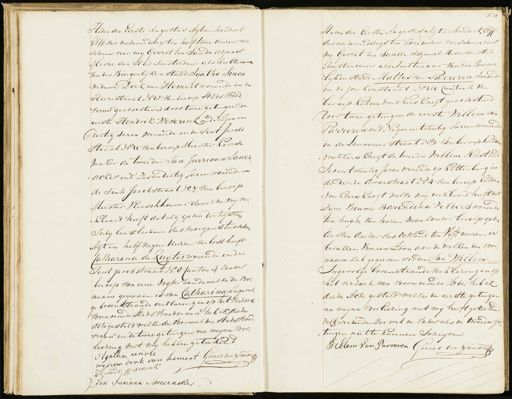 Heden den Eerste Augustus Agtienhondert Elff des nademiddag ten half twee uuren verscheen voor mij Gerrit ten Sande Adjunct Maire der Stad Amsterdam als Ambtenaar van den Burgerlijken Stand Agatha Sinou weduwe Dirk van Hemert wonende in de Heerestraat N 12. van beroep stads Vroed, vrouw geadsisteerd door twee getuigen de eerste Hendrik Weverink oud Negen en dertig Jaren wonende in de Sint Jacobs straat N 10 van beroep Meester Kaarse maker de tweede Jan Jurriaan Saueracker oud zes endertig Jaren wonende in de Sint Jacobstraat N.J. Van beroep Meester Vleeschhouwer dewelke my verklaard heeft dat zij op den dertigsten Inlij laastleeden des morgenstusschen Agt en half negen uuren verlost heeft Catharina de Ruyter wonende in de Sint Jacobstraat N. 8 Canton 4. zonder beroep van eene Dogter aan dewelke de voornaam gegeeven is van Catharina Ingevolge bovenstaande verklaring en op het verzoek voornoemde Stads Vroedvrouw heb ik deeze aetegesteld welke de voormelde stadsvroed vrouw en de twee getuigen na myne voorleezing met my hebben geteekend Agatha ginoil weduw dirk van hemert Gerrit ten Sande Hendt, Weserink Jan Janaan Saceeraser 5. 18 Heden den Eersten Augustus Agtienhondert. Elff des na demiddags ten Twee uuren verscheen voor mij Gerrit ten Sande Adjunct Maire der Stad Amsterdam als Ambtenaar van den Burger „lyken stand Mattys van Parreren wonende in de Jonkerstraat N 120 Canton 2 van beroep Katoen drukkersknegt geadsisteerd door twee getuigen de eerste Willem van Parreren oud Negen entwintig Jaren wonende in de Lauwerier straat N 23. van beroep katoe „drukkers knegt de tweede Willem Rustoud Zes en twintig Jaren wonende op Kattenburgin de derde dwarstraat N 4 van beroep Katoen „drukversknegt welke my verklaard heeft dat zijne Vrouwe Barendina Vedders wonende ten huijze van haren man zonder beroep op den Eersten deezer des Octtend ten Vyff uuren is bevallen van een zoon aan de welken den voornaam zal gegeeven worden van Willem. Ingevolge bovenstaande verklaringen op het verzoek van voornoemde Vader heb ik, deeze Acte gesteld welke de eerste getuigen na mine voorleezing met my heeft geteekend declarerende zoo wel de Vader als de tweede ge „tuigen niet te kunnen schryven. Willem van Parreren Gerrit ten Sande