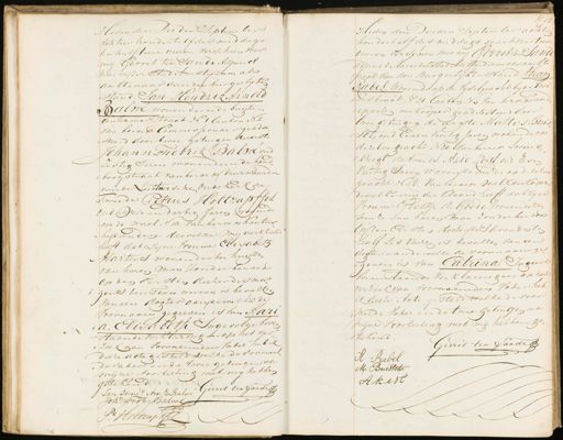 Heden den Derden September. Achtienhondertelfdes middags ten half twee uuren verscheen voor mij Gerrit ten Sande Adjunct maire der Stad Amsterdam als ambtenaar van den burgerlijken „stand Jan Hendrik Arnold Balwe wonenden de buyter bantenmerstraat N 1 Canton N 2. van beroep Commissionair geadsi „steerd door twee getuigen deeerst Johann Fredrik Balwe oud zestig Jaren wonende in de handdboogstraat van beroep deurwaarder van de Luttersche Oude Kerk de Tweede Petrus Holtzapffer oud Drie en dertig Jaren wonende op de waal N 14. van beroep Kantoor „bedienden. dewelke my verklaard heeft dat zyne Vrouwe Elisabeth Martens wonende ter huyze van haren man zonder berdep op den Eersten deezer des morgens ten Tien uuren is bevallen van een dogter aan de welke de Voornaam gegeeven is van Mart a. Elisabeth Ingevolge boven =staande verklaring en op het velzoek van voornoemden Vader heb ik deeze acte gesteld welke de voormel de vader ende twee getuigen na mijne voorleezing met my hebben 5 getekend. Jan Hendr Arns Balwe Gerrit ten Sande Joh= Prdt Balwe P: Holtzap Hee 67.15 Heden den Derden September achtien hondert etf des middags quart voor twee uuinen verscheen voor mij Gerrit ten Sande adjunct Maire der Stad Amsterdam als ambte paar van den Burgerlyken stand Abram RabeL wonende op de Vyselgracht by de loor verstraat N 21. Canton N3 van beroep aard rappelen verkooper geadsisteerd door twee getuigen de eerste Mattys Buis „sch, oud Een en Veertig jaren wonende op dezelve gracht N 20. van beroep Looiers knegt de tweede Arie kest oud zes en Veertig Jaren wonende mede op dezelve gracht N 23. van beroep melkverkopen dewelke my verklaard heeft dat zijne Vrouwe Peertje de Goede wonende ten huize van haren man zonder beroep Opden Eersten deezer deSavonds ten half zes uuren is bevallen van een dogter aan de welke de voornaam gegeven is van Catrina Ingevol Hbovenstaande Verklaringen op het verzoek van voornoemden Vader heb beeze Acte gesteld welke de voor welde Vader en de twee getuigen na mijne Voorleezing met mij hebben zerekend Gerrit ten Sande R Rabel M: Buissel AKlst