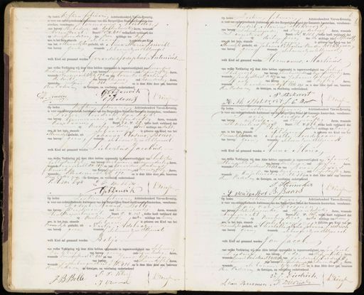 Op hedden Vijftien februari Achttienhonderd Vier-een-Zeventig, is voor ons ondergeteekende Ambtenaar van den Burgerlijken Stand der Gepeente Am- sterdam, verschenen Kerimanus Mulder van beroep stukadoor oud achtentwintig Jaren, wonende Rozenstraat Buurt CE.No. 405 welke heeft verklaard dat op veertiendezer des voor middags ten hi ure, in het huig, staande als boven is geboren een kind van het Mannelijke geslacht, uit Anna Maria Deuvik. van beroep geeneg wonende als bovenszine Echtgenoot welk Kind zal genaamd worden Gerardus Josephus, Antonius, van welke Verklaring wij deze Akte hebben opgemaakt in tegenwoordigheid van Gerardus Andreas Deuvik van beroep nimmerman oud vierenviftig Jaren, wonende Elandegracht Gh 172. en van Cornelis Martinus de wit van beroep kuiper oud zesendertig Jaren, wonende Spui t. 266. en is deze Akte door ons, benevens den vader en de Getuigen, na voorlezing onderteekend. Get Denvik JH Mulder Driessen CMilen Op heden Zestien februari Achttienhonderd Vier-en-Zeventig is Voor ons ondergeteekende Ambtenaar van den Burgerlijkenband der Gemeente Apsterdam, verschenen: HHendrik, Marinus Stikvoort van beroep Schuitenvoerder oud vier en dertig Jaren, wonende Langestraat. Buurt SS, No. 151, welke heeft verklaard dat op dertien dezer des na middags ten halftwaalf urein het huis, staande als boven is geboren een kind van het Mannelijke geslacht, uit Johanna Catharina van den Kerkhoven van beroep geen wonende als bovenvzijne Echtgenoot welk Kind zal genaamd worden Hermanus, Martinus van welke Verklaring wij deze Akte hebben opgemaakt in tegenwoordigheid van hetrijn stikvoort van beroep schuitenvoerder oud negenendeertig Jaren, wonende Jankerstraat n 147/en van Johannes Cornelis oot van beroep yeen oud viftig Jaren, wonende Haarlemmerdik UU 191 en is deze Akte door ons, benevens den Vader en de Getuigen, na voorlezing onderteekend. P SZikvoort Driessen H M Hekvoort J. C. Boot Hftie febru Achttienhonderd Vier-en-Zeventig is voor ond ondergeteekende Ambtenaar van den Burgerijken Staan der Genaente Ansterdam, verschenen Pieker Hendrik van Dijk. van beroep timmerman oud vijfendertig Jaren, wonende Overtoom Buurt Kk, No. 32, welke heeft verklaard dat opveertien dezer des oor middags ten acht„ ure in het huis, staande als bovenz is geboren een Kind van het Mannelyk geslacht, uit Johanna Clasina, Bouer. van beroep geen wonende als bovenszine Echtgenoot welk Kind zal genaamd worden Cubertus Jacobus. van welke Verklaring ij deze Akte hebben opgemaakt in tegenwoordigheid van Lubertus tokken van Dijk, van beroep werkman oud zevenendertig Jaren, wonende baangracht da 147, en van Gerardus Andreas Denvik van beroep timmermam oud vierenvijftig Jaren, wonende, Elaadsgracht GG 172 en is deze Akte door ans, benevens den vader en de Getuigen, na voorlezing onderteekend. P. H. van Dyk L F van Felijk Driesten Gethenbrk Op heden Zestien februari Achttienhonderd Vieren-Zeventig is voor ons ondergeteekende Ambtenaar van den Bargerlijken Stand der Gemeente Amsterdam, verschenen DDaven Kenderbos van beroep Amitselyar oud Eenenvyftig Jaren, wonende Snicolaasstraat Buart H, No. 436, welke heeft verklaard dat op Leden hes voor middags ten Leven ure, in het huis, staande alsboveri is geboren een kind van het Vrouwelyk geslacht, uit Agatha, Lindeboom van beroep geen wonende als boven zine Echtgenoot. welk Kind zal genaamd worden Anna Maria van welke Verklaring wij deze Akte hebben opgemaakt in tegenwoordigheid van Jakannes steupekes van beroep wwerkman oud dertig Jaren, wonende kloemsdwstraat DD 422, en van Barend Baars. van beroep werkman oud vyfen vyftig Jaren, wonende Aupliersstraat, O0. 369 en is deze Akte door ons, benevens denvader en de Getuigen, na voorlezing onderteekend. I Stenneker Driessen E van den Nos B. Baars Op heden Zestien februari Achttienhonderd Vieren-Zeventig, is voor ons ondergeteekende Ambtenaar van den Burgerlijken Stand der Gemeente Amsterdam, verschenen: Joseph, Sarend, Bolle. van beroep koopman oud zeven enveertig Jaren, wonende Houtkoopersburgwal Buurt 9. No. 113,, welke heeft verklaard dat opveertien dezer des na middags ten zeven ure, in het huis, staande vals boaen is geboren een Kind van het vrouwelike geslacht, uit Naatje, Adelaar van beroep geen wonende als bovens zine Echtgenoot. welk Kind zal genaamd worden Betje van welke Verklaring wij deze Akte hebben opgemaakt in tegenwoordigheid van Saloman van Kleef van beroepgeen oud zes en zestig Jaren, wonende Kerwersstraat C. 403 en van JaarsIzermayn van beroep geen oud drieen vijfftig Jaren wonende Capenbargerstraat N. 486, en is deze Akte door ons, behevens den vader en de Getuigen, na voorlezing onderteekend S: V: Klee Driecse J B Bolle J YJzerman Op heden Zestien februari Achttienhonderd Vier-en-Zeventig is voor ons ondergeteekende Ambtenaar van den Burgerlijken Stand der Gemeente Amsterdam, verschenen Aan van Breemen van beroep schuitenvoerder oud drie en twintig Jaren, wonende baangracht Buurt DD, No. 108,, welke heeft verklaard dat op veertiendezer des na mddags ten zeven Jare, in het huis, staande Jalsboven is geboren een Kind van het mannelyke geslacht, uit tharlotta, Maria, Johanna, Diearich van beroep geen wonende als boven zine Echtgenoot. welk Kind zal genaamd worden Jan Jacob. van welke Verklaring wijdeze Akte hebben opgemaakt in tegenwoordigheid van Jan Jacob¬ Diedrich van beroep vady oud drie eenzestig Jaren, wonende Gerard Doustraat 4y144en van Frederik Diedrick van beroep vanhorbediende oud Enendertig Jaren, wonende als bovenV4. 144 en is deze Akte door ons, benevens den Vader en de Getuigen, na voorlezing onderteekend. J. J. Diedrich Drcessen J: Van Beeemen. F. Dudriel