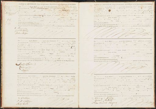 Lienteen Lieter ip oud negenen twintig Jaren, van beroep schoenmaners zugt wonende in de Freijdwarsstraat N o 1 Op het verzoek aan ons gedaan door Jntrina stomma vnbersep vroedvraim wannade ebinneeral ijnde deze Acte na mijne voorlezing geteekend door der voedvradw in ze na geluiger Bevestigd ingevolge de Wet door mij Ondergeteekende V aamburg Ambtenaar van den Burgerlijken Stand. WHvoombergh h omma gewet valk Pieter Steppe MAIRIE van AMSTERDAM, Eerste Arrondissement, Hoofd-Plaats van het Departement ZUIDERZEEG Den Veertiende dag der Maand december van het Jaar Achtienhonderd Elf ten twaalf ure, op demiddag. Acte van Geboorte van Rosette Broek, geboren des Nagts ten twee uren, Dochter van Abrahan den Elfder dez Boas Broek van beroep vlersenvrager voor de oos stul en Jurik Levi zouden beroep Echte Liven, wonende op het worper volo N 64 Canton No 1 indedit kind ovag geboren het Kind is erkend te zijn van het vrouwelyk geslacht. Getuigen Saviolasusto oud z en twintig Jaren, van beroep klenemaker wonende op de Klyzersgragt No 34 en Siede Jacobs oud drie en twintig Jaren, van beroep Koopman wonende op het misjerieei No 60 Op het verzoek aan ons gedaan door voornoemde vader Zijnde deze Acte na mijne voorlezing geteekend door kunnende de vader oude twee Getuigen uit hoofde vn de sadatknietscrrijven Bevestigd ingevolge de Wet door mij Ondergeteekende Wo He vooberes Ambtenaar van den Burgerlijken Stand. NVVoombergh Den Viertiende dag der Maand december van het Jaar Achtienhonderd Elf ten waalf ure, op demiddag Acte van Geboorte van Hermina Klakn geboren — den Elfde dezer des voordemeddagsten val twaalf uren, Dochter van Jan Nicolaas Klahnman beroep Comnisainair en van Hermina ten Cate zonder beroep Echte Lieden, wonende, op de Keyzersgragt by de brouwersgragt No 381 Canton No 4 zynde ditking bldaar geboreen n het Kind is erkend te zijn van het vrouwelijk geslacht. Getuigen Willem Koningstein oud zes eniettig Jaren, van beroep kleremakers baun wonende op de ielantiers gragt No 133 en Jan Duyrr oud Een en dertig Jaren, van 1 „ beroep kantoor bediende wonende op d Haarlemmerdyk by het plijn Nr 63 Op het verzoek aan ons gedaan door voornoemde vader Zijnde deze Acte na mijne voorlezing geteekend door den vader inde twee Getuigen Bevestigd ingevolge de Wet door mij Ondergeteekende W H= Voomberg Ambtenaar van den Burgerlijken Stand. v.S. Voombergh J N KlatD Woonngi : Duijs Den Veertiende dag der Maand december van het Jaar Achtienhonderd Ef een twig ure, op demiddag. Acte van Geboorte van Maria Anna Siet , geboren ten van den Nagissing twee dagen geleeden der opgebakerd in Luyers een hempje een wit latoen Borstrokje een wotte Luyjer res halddoekje twee Muyjes een vlipje gevonden alhir en de korte reguliers deraesstraat by de boterwarkt het Kind is erkend te zijn van het vrouwelijk geslacht. Getuigen Hendrik Smagge oud wonende Jaren, van beroep a van, —