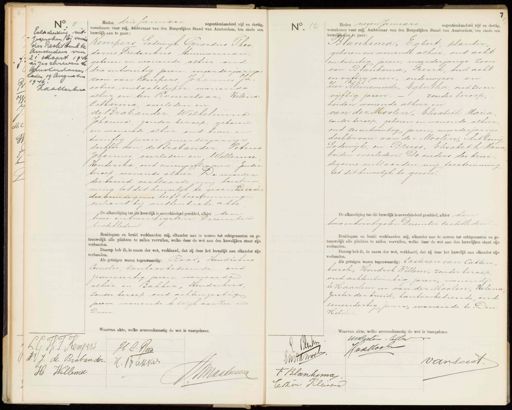 1 1 Eaktschuiding, met gesroken /bij vorm der Rechtbank te Amsterdam van 21 Maart 194 ingeschreven & Amsterdam, reden 19 Augustus 1946 Zaadarbes Heden drie Januari negentienhonderd vijf en dertig, verschenen voor mij, Ambtenaar van den Burgerlijken Stand van Amsterdam, ten einde een -huwelijk aan te gaan: iKempers Lodewijk Gerardus Theo dorus Frederikus Timmerman, geboren en wonende alhier, omd drie entwintig jaren. meerderjarige zaan van Kempers Johannes Ja- „cobus, metaalslijper, wonende alhier en ten Rouwelaar, Helena Catharina, overleden en de Brabander, Wilhelmma Johanna zonder beroep, geboren en wonende alhier, oud twee en twintig Jaren meerderjarige dochter van de Brabander Petrus Johannes overleden en Willemse Henderika oud vierenvijftig jaren. zonder beroep, wonende alhier. Te moeder der bruid verklaarde mij toestem, ming tot dit huwelijk te gever De vader desbruidegoms heeft toestemming verleend bij authentieke akte De afkondiging tot dit huwelijk is onverhinderd geschied, alhier den twee en twintigsten December laatstleden Bruidegom en bruid verklaarden mij, elkander aan te nemen tot echtgenooten en ge trouwelijk alle plichten te zullen vervullen, welke door de wet aan den huwelijken staat zijn verbonden. Daarop heb ik, in naam der wet, verklaard, dat zij door het huwelijk aan elkander zijn verbonden. Als getuigen waren tegenwoordig: Roos, Hendrikus Cornelis, Kantoorbediende. oud zesenveertig jaren, wonende alhier. en Bakker, Hendrikus, zonder beroep, oud achtenzestig jaren wonende te Wijk aanZee en Duin. Waarvan akte, welke overeenkomstig de wet is voorgelezen. No. 12 Heden negen Januari negentienhonderd vijf en dertig, verschenen voor mij, Ambtenaar van den Burgerlijken Stand van Amsterdam, ten einde een huweln van de gaan: Blanksma, Egbert, planter, geboren en wonende alhier, oud acht en twintig jaren, meerderjarige zoon van Blanksma, Freerk, oud acht en viftig jaren, onderwijzer en Zur Kleinsmiede, Egbertha, oud zes en vijftig jaren. — zonder beroep, beiden wonende alhier en van der Moolen, Elisabeth Maria zonder beroep, geboren en wonende alhier. oud zes entwintig jaren, meerderjarige dochter van van der Moolen, Anthonij Lodewijk, en Bruss, Elisabeth Maria beiden overleden. De ouders des brui„ degoms verklaarden mij toestemming tot dit huwelijk te geven. De afkondiging tot dit huwelijk is onverhinderd geschied, alhier den twee entwintigsten December laatstleden. Bruidegom en bruid verklaarden mij, elkander aan te nemen tot echtgenooten en ge trouwelijk alle plichten te zullen vervullen, welke door de wet aan den huwelijken staat zijn verbonden. Daarop heb ik, in naam der wet, verklaard, dat zij door het huwelijk aan elkander zijn verbonden. As getuigen waren tegenwoordig: lasteren van latten, burch, Hendrik Willem, zonder beroep, oud achtentwintig jaren, wonende te Haarlem en van der Moolen, Helend zuster der bruid, kantoorbediende, oud eenendertig jaren, wonende te Den Helder Waarvan akte, welke overeenkomstig de wet is voorgelezen. OO 94 O G Jp T Rempers J.C. Woz WV.J. de. Brabander. H. Bakker H Willem JMaateuu unlasten. Calle erkr HadHool Jitmle van soest t Blanksma Ceer Kleergea