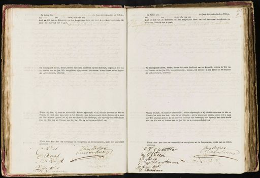 W: De Vries F: H: Niemann ip heden den Zeven en Twintigsten September des Jaars Achttienhonderd en Vijfien, des Inisdips ten Eg uren, zijn voor ons ae Insteehag de vsterg Raad en Lid van de Kommissie tot den Burgerlijken Stand der Stad Amsterdam, verschenen, ten einde een Huwelijk aan te gaan, uisseren Johann Cons Christoph Schulze, van Verbinghanden in het Vorstendom Lippe Bakkerskrest oan iht en twintig Jaren Wonende Alhier Meerderjarige Doon Van Johann Oito Schulze en Amilia Krawinkel. beide Overledeng ten Eent zyde En Margaretha Aalders van Amsterdam dienstbaar, oud Vyf en twintig Taren, Wonende Alhier Merderjarige Dochter van Jan Alwa Orack oerde overleden ter andere zyde Valders De voorafgaande Acten, welke, nevens het zesde Hoofdstuk van het Huwelijk, volgens de Wet van 25 Ventose van het jaar Elf, voorgelezen zijn, bestaan, ten eersten: in een Extract uit het Register der Afkondigingen, behoordi zhin geschied den zerebunven in Veu pwirg Vigsten September Laastbedenen ten tweden de Doot tevullen der Verlookden ten derden der Doodsedullen der Onderen van de Brun„ Voorts Verklaarden ons de aanstaande Echtgenoten, genisent de Ondergeteekende getuigen, onder presentatie van Eeden het Overlyden Groot Onderen der Bruidigome den Ondegen en Nederzy in Jan Waarna wij hun, bij name en afzonderlijk, hebben afgevraagd: of zij elkander zannamen als Man en Vrouw; het welk door hun, ieder in het bijzonder, met ja beantwoord zijnde, hebben wij in naam der Wet uitspraak gedaan: dat zij door het Huwelijk zijn verëenigd; alles ingevolge het derde Hoofd- stuk der Wet van 20 Ventose van het Jaar Elf, en in tegenwoordigheid van d Pachoor kars Pasben s on Twee en Veertig Jarnig East Hendrik Satman Bakker oud Twee en Vyftig Janen Gysbertus Van Dyk Tapper Dirk Braakman Burwaker vor Oud Een en Zestig Parnn. Vier en dertig, Claarje de Worendeblhier Zijnde deze Acte door ons vervaardigd en voorgelezen aan de Comparanten, welke met ons hebben geteekend. Huydrssel JJ E schuttge mvonswile WJ R.C der A. Mari 3 CGhoatman P Van Dyk