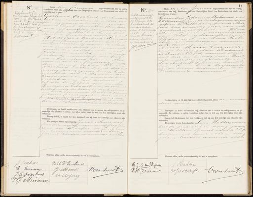 No. 19 No. 19 Dithuwelijk is ontbonden door het vonms der Recht bank te Amsterdam van 29 Mei 1941 en de inschriving 25 Juli 1941. i te Amsterdam, heden vantoest. Heden tien Janinari negentienhonderd vier en dertig, verschenen voor mij, Ambtenaar van den Burgerlijken Stand van Amsterdam, ten einde een huwelijk aan te gaan: geboren en wonende alhier, oud Garhard Oomkens, werkman, twintig jaren, minderjarige zoon van Dirk Gorselaar Oomkens, wonende alhier, en Maria Wil„ oud vijf en vijftig jaren, werkman, lemima Spiselers, overleden, en Hildegard Gertrud Merman zonder beroep, geboren te Berlijn in Duitschland wonende alhier, oud een en twintig jaren, van echt gescheiden echtgenoote va Johannes van Ek, meerderjarige erkende nauurlijke dochter van Pranciscus Johannes Mei man, oud zeven enveertig jaren, timmerman en Ida Martha Adelheid Zastrad, oud drie en veertig jaren, zonder beroep, beiden wonende alhier. De vader des bruidegoms en de ouders der bruid verklaarden mij hun toestemming tot dit huwelijk te geven Bruidegom en bruid verklaarden, de eerste mel toestemming der teede, bij deze te erkennen een kind, genoomd Gerhard Meiman geboren alhier negentien December negentienhonderd drie en dertig. De afkondiging tot dit huwelijk is onverhinderd geschied, alhier den acht tienden November laatstleden. Bruidegom en bruid verklaarden mij, elkander aan te nemen tot echtgenooten en ge trouwelijk alle plichten te zullen vervullen, welke door de wet aan den huwelijken staat zijn verbonden. Daarop heb ik, in naam der wet, verklaard, dat zij door het huwelijk aan elkander zijn verbonden. Als getuigen waren tegenwoordig: Jacob Meurs, staf. Ceerder, oud negenenvijftig ja- ren en Wouter de Jong zon der beroep, oud zeven en zestig jaren, beiden wonende alhier No. 20 bij tinnis der Echtscheiding uitgesperken dectrbank ze amsterdam van rovembur 1945, ingeschre¬ ven te Amster¬ dam, heden 121 Maart 1946 Jnon 1. Heden zeventien Januari negentienhonderd vier en dertig verschenen voor mij, Ambtenaar van den Burgerlijken Stand van Amsterdam, ten einde een huwelijk aan te gaan: Gerardus Johannes Alphonsus van Vlijmen, handelsvertegenwoordiger geboren te Rotterdam, wonende alhier oud twee en veertig jaren, van echt gescheiden echtgenoot van Klara Maria Weijers, meerderjarige zoon van Johannes Leonardus van Vlijnen en Anna Maria Hoebe¬ beiden zonder beroep en wonende te Rotterdam, en Anna Maria Tessmer, zonder beroep, geboren te Dortmund in Duitschland, wonende alhier. oud drie en tintig jaren, Duit sche, meerderjarige dochter van Leo August Sessmer, handels bediende en Anna Krajczewski zonder beroep, beiden wonende te Doelmund voornoemd. De afkondiging tot dit huwelijk is onverhinderd geschied, alhier den zesden dezer maand Bruidegom en bruid verklaarden mij, elkander aan te nemen tot echtgenooten en ge trouwelijk alle plichten te zullen vervullen, welke door de wet aan den huwelijken staat zijn verbonden. Daarop heb ik, in naam der wet, verklaard, dat zij door het huwelijk aan elkander zijn verbonden. Als getuigen waren tegenwoordig: Sara Hakker, zonder beroep, oud een en dertig jaren, en Willem Govert van de Schaft, koopman, oud acht en dertig jaren, beiden wonende alhier Waarvan akte, welke overeenkomstig de wet is voorgelezen. J. Oomkens. J M H Zeestron R. Menn J: Mers. Van soest D G Oomkens WOsing JJJ Merman