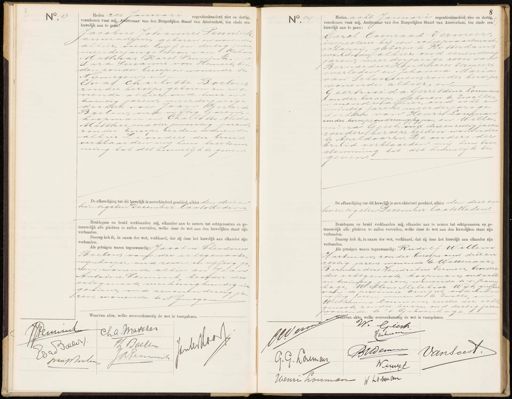 No 13 Heden zes Januari negentienhonderd vier en dertig, verschenen voor mij, Ambtenaar van den Burgerlijken Stand van Amsterdam, ten einde een huwelijk aan te gaan Jacobus Johannes Pennink assuradeur, geboren en wonende alhier, oud vijf en dertig jaren meerderjarige zoon van N/ohan Mathias Karel Pennink, Lara Susanne van Hemert, bei¬ den zonder beroep en wonende te Nijmegen, en Eva Charlotte Boelen, zonder beroep, geboren en wo¬ nende alhier, oud twee en twintig jaren, meerderjarige dochter van Joan Gerard Boelen, oud vijftig jaren koopman en Charlo He Alida Matthes, oud vier enveertig jaren. zonder beroep, beiden wonende alhier Deouders der bruid verklaarden mij hun toestem„ ming tot dit huwelijk te geven. De afkondiging tot dit huwelijk is onverhinderd geschied, alhier den stuilen twintigsten December laatstleden Bruidegom en bruid verklaarden mij, elkander aan te nemen tot echtgenooten en ge trouwelijk alle plichten te zullen vervullen, welke door de wet aan den huwelijken staat zijn verbonden. Daarop heb ik, in naam der wet, verklaard, dat zij door het huwelijk aan elkander zijn verbonden. Als getuigen waren tegenwoordig: Jacobus Theodans Boelen, vam der echtgenoote, wijnkooper, oud zeven en vijftig ja„ ren, wonende alhier en Jean Antoine Pennink broeder des echtgenoots, werhtingkundig m; geneur, oud zevenendertig ja„ ren, wonende te Nijmegen. 19 N. Heden acht Januari negentienhonderd vier en dertig, verschenen voor mij, Ambtenaar van den Burgerlijken Stand van Amsterdam, ten einde een" huwelijk aan te gaan: Carel Coenraad Vermeer, mstecteur bij een schelpvaartmaak schappy, geboren te Rotterdam, wonende alhier, oud eenendertig jaren, meerderjarige zoon van Bernardus Hendricus Vermeer, overleden en Johanna Maria van Schouwen, zonder beroep, wonende alhier, en Geertruida Gerritdina Louman zonder beroep, geboren te Zwalle, wonende alhier, oud acht en twintig jaren, meerderjarige dochter van Henri Louman zonder beroep, oud zesenvijftig jaren, en Wille„ mina Gerst, oud drie en zestig jaren zonder beroep, beiden wonende te Apeldoorn. De ouders der bruid verklaarden mij hun toe- stemming tot dit huwelijk te geven De afkondiging tot dit huwelijk is onverhinderd geschied, alhier den drie en twintigsten December laatstleden. Bruidegom en bruid verklaarden mij, elkander aan te nemen tot echtgenooten en ge trouwelijk alle plichten te zullen vervullen, welke door de wet aan den huwelijken staat zijn verbonden. Daarop heb ik, in naam der wet, verklaard, dat zij door het huwelijk aan elkander zijn verbonden. Als getuigen waren tegenwoordig: Rudolf Willem Hartman, zonder beroep, oud drie en zestig jaren, wonende te Wassenaar, Bernardus Hendrikus Vermeer, broeder des echtgenoots, koopman, oud acht en twintig jaren, wonende te 's- braven hage, Willem Melchior Wijf, griffe„ van de provincie Overijsel, oud een en vijftig jaren, wonende te zwolle en Willemina Louman, zuster der echt genoote, zonder beroep, oud dertig jaren wonende te 'S. Gravenhage. Cha. Matthes Wemmeet