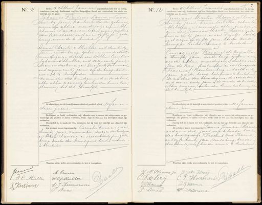 No. 11 Heden achttien Januari negentienhonderd vier en dertig. verschenen voor mij, Ambtenaar vanden Burgerlijken Stand van Amsterdam, ten einde een huwelijk aan te gaan: Johannes Franciscus Lansie om vier en twintig jaren, kantoorbediende, geboren en wonende alhier, meerderjarige zoon van Al„ phonsies Zansue, overleden en van Seraptina van Viershaver, oud een en vijftig jaren zonde. beroep, wonende te Amsterdom Anna Christina Muller, oud drientwnti jaren, zonder beroep. geboren en wonende alhier. meerderjarige dochter van Willem Cornelis. Johannes Hbuller, oud zesen veertig jaren, Aram conducteur en van Dina Jacobs Timmeman,- oud negen en veertig jaren, zon der beroep, beisen- wonende te Amsterdam. te moeder des bruidegomsen de onders de brens- allen alhier ceanwerig, verleenden hunne toe„ stemmer, tot del huwelijk. De alfkondiging tot dit huwelijk is onverhinderd geschied, ahier Zesanuar.- dezes jaars. Bruidegom en bruid verklaarden mij, elkander aan te nemen tot echtgenooten en ge- trouwelijk alle plichten te zullen vervullen, welke door de wet aan den huwelijken staat zijn verbonden. Daarop heb ik, in naam der wet, verklaard, dat zij door het huwelijk aan elkander zijn verbonden. Als getuigen waren tegenwoordig: Cornelis Roos, vn v vier en twintg jaren, vuurwerker, zwager des brinsgemn. en Hara Lansue, anszesentwintig Jan, zonder- beroep. zuster des lezen segoms, beidie woonse te Amsterdom. Waarvan akte, welke overeenke No. 12 Heden achttien Januari- negentienhonderd vier en dertig verschenen voor mij, Ambtenaar van den Burgerlijken Stand van Amsterdam, ten einde een huwelijk aan te gaan: Jurriaan Marten Harms, ood twee e ttwintig jaren, brieven bestellen, geboren te Hilversuem en wonende alhier, fneesserjarige zoon van Jurriaan Harten Harms toud twee en zestig jaren, en van Trijntje Smid„ voet negen en vijfft; jaren, besche zonder beroep/en beiden woner se te Amsterdam en Cunagonela Francina de Krij, onstwel en twiftj jaren, zonder beroep, ggeborew en wo nende alhier, meerderjarg dochter van: Jan de Krij, bootweekes, en van Cunoginda Francina /Heisterenberg, oudochtt avt jaren, zooder berep, bene woonuse te wsterdom. De ouders des bruidegoms, de vodersubins oed een en zest, jaren en de moeder der bensotten alhier aanmee, vertien den Runne toestemn, tot dit huwelijk. De afkondiging tot dit huwelijk is onverhinderd geschied, alhier Zes Janen dezes jaars Bruidegom en bruid verklaarden mij, elkander aan te nemen tot echtgenooten en ge trouwelijk alle plichten te zullen vervullen, welke door de wet aan den huwelijken staat zijn verbonden. Daarop heb ik, in naam der wet, verklaard, dat zij door het huwelijk aan elkander zijn verbonden. Als getuigen waren tegenwoordig: Douwe Jurri aan Harms acdteer en deel, jaren, miubelmaker, broeder des brie segam en Fredurik Dirk Harms, ausvyfe taut, jaren, zonder beroep, broeder. des brie segom besder wonende te Amsterdom Waarvan akte, welke overeenkomstig de wet is voorgelezen. Kanso M hansiie 1