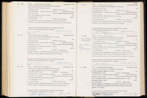 Hlijn No. 863 Heden drieëntwintig november negentienhonderd zestig verscheen voor mij, ambtenaar van de burgerlijke stand van Amsterdam: Meijer, Gerrit Jan,aanspreker, oud vijftig jaar, wonende te Amsterdam, die verklaarde, dat op eenentwintig november negentienhonderd zestig t dertien uur nul minuten, in de gemeente Amsterdam is overleden. Leerink, Petrus Johannes,zonder beroep, oud drieentachtig jaar, geboren te Aalten, wonende te Amsterdam, gehuwd geweest met: Zuikerberg, Rozetta,zoon van: Leerink, Johannes en: ten Dam,Annigjen,beiden overleden. De aangever verklaarde uit eigen wetenschap van het overlijden kennis te dragen. Waarvan akte, welke overeenkomstig de wet is voorgelezen. Crg Ohoogrma No. 866. de doorhaling van een woord goedgekeurd. JC de Rooij Vaaosma de Rooij, Johannes Christinus,aanspreker, oud Heden drieentwintig november negentienhonderd zestig verscheen voor mij, ambtenaar van de burgerlijke stand van Amsterdam: zesenzestig jaar, wonende te Amsterdam, die verklaarde, dat op tweeëntwintig november negentienhonderd zestig te acht uur nul minuten, in de gemeente Amsterdam is overleden: Heselaars, Wilhelmus Johannes,zonder beroep, oud vierenzeventig jaar, geboren te Amsterdam, wonende te Amsterdam, echtgenoot van: Landman, Verhoeven, Maria Adriana Theodora Josepha,gehuwd geweest met: Landman, Elisabeth,zoon van: Heselaars, Gerardus en: van Doorn, Klazina,beiden overleden. De aangever verklaarde uit eigen wetenschap van het overlijden kennis te dragen. Waarvan akte, welke overeenkomstig de wet is voorgelezen. Daovesa J. C de Rooij No. 864 Heden drieentwintig november negentienhonderd zestig verscheen voor mij, ambtenaar van de burgerlijke stand van Amsterdam: van Ginhoven,Albert,begrafenisondernemer, oud drieenvijftig jaar, wonende te Amsterdam, die verklaarde, dat op tweeëntwintig november negentienhonderd zestig te twaalf uur veertig minuten, in de gemeente Amsterdam is overleden van Slooten,Nicolaas,zonder beroep, oud vierentachtig jaar, geboren te Amsterdam, wonende te Amsterdam, gehuwd geweest met: Scholte, Johanna,zoon van: van Slooten, Klaas en: de Genzer, Maria Catharina,beiden overleden. De aangever verklaarde uit eigen wetenschap van het overlijden kennis te dragen. Waarvan akte, welke overeenkomstig de wet is voorgelezen. (Baants Albe Ginbreecen No. 867 Heden achtentwintig november negentienhonderd zestig verscheen voor mij, ambtenaar van de burgerlijke stand van Amsterdam: Stolwijk,Antoon,zender beroep, oud drieentachtig jaar, wonende te Amsterdam, die verklaarde, dat op zesentwintig november negentienhonderd zestig te zeven uur vijftien minuten, in de gemeente Amsterdam is overleden: van den Emster,Pieter Fredrik Hendrik,zonder beroep, oud achtenzeventig jaar, geboren te Rotterdam,, wonende te Amsterdam, gehuwd geweest met: Martius, Willemina Cornelia,zoon van: van den Emster, Jan Hendrik en: Volmee, Johanna Christina, bedden overleden. De aangever verklaarde uit eigen wetenschap van het overlijden kennis te dragen. Waarvan akte, welke overeenkomstig de wet is voorgelezen. NHollant Haantes