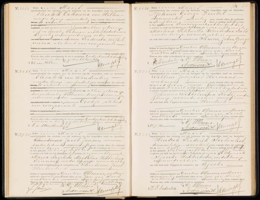 aan welk kind wordt gegeven de voornaam van Hendrik Gedaan in tegenwoordigheid van Cautier Oltmans, ambtenaar oud een en veertig jaren, wonende alhier en van Jan van Soeis ambtenaar ouzzes entwintig jaren, wonende alhier. Waarvan akte, welke overeenkomstig de wet is voorgelezen. 2G Oetmans W. J Herstlss Ootorsdert HlWesel No. 25110 6o Heden zeven Maart negentienhonderd tien verscheen voor mij Ambtenaar van den burgerlijken stand van Amsterdam: Theodorus Jacob Jansen kantoor bediende, oud negen en vijfti jaren, wonende alhier, die verklaarde dat res dezer in dere gemeente Lellegracht te enamiddags ten revenure is geboren een kind van het munnelijk geslacht, uit zijne echtgenoote Maria Angelina Magdalena Heebertina Sonnair, zonder beroep, wonende alsie aan welk kind worden gegeven de voornamen van Theodorus Jacob Hubertus Gedaan in tegenwoordigheid van Gautiar Oltmans, ambtenaar oud een en veertig jaren, wonende alhier en van Jan van Soert ambtenaar oud zes en twintig Jaren, wonende alhier. Waarvan g welke overeenkomstig de wetis voorgelezen Goedgekeurd de door zy van een gezole vet voor„ Oltman 3 van zoert Newverge J. Janun No. 2574 Heden zeven Maart negentienhonderd tien verscheen voor mij Ambtenaar van den burgerlijken stand van Amsterdam Hendrik Frederik Siebenlist diamantslijper oud zes en twintig jaren, wonende alhier, die verklaarde dat op zes dezer des voormiddags ten halftwalfne in deze gemeente Palmgracht twee en vi is geboren een kind van het vrouwe lijk geslacht, uit zijne eellgenoote Sjouke Hendriksen, ronder beroep wonen de alhier aan welk kind wordgegeven de voornaam van Sjiske Gedaan in tegenwoordigheid van Gautier Oltmans, ambtenaar oud eenenveertig jaren wonende alhier en van Jan van Soert, ambtinaar oud zesentwintig jaren, wonende alhier, Waarvan akte, welke overeenkomstig de wet is voorgelezen. C Olsman H. F: Siebenlish van soert JWesse