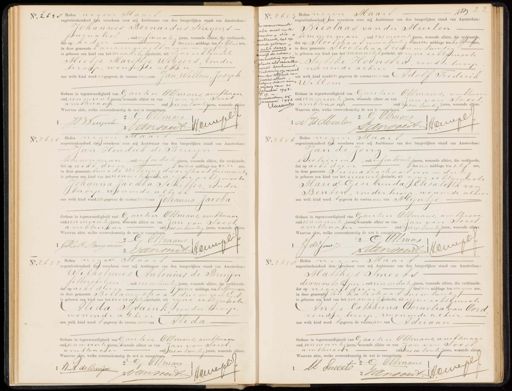 No. 2638 8 Heden negen Mlaart negentienhonderd tien verscheen voor mij Ambtenaar van den burgerlijken stand van Amsterdam: Johannes Bernardus Ruyens ounalist, oud vijf en veertig Jaren, wonende alhier, die verklaarde dat op heden des voormiddags ten half drie ure, in deze gemeente Lauriergracht negen en vif is geboren een kind van het mannelikgeslacht, uit zijne echtgenoote Alietje Marijtje Wiggers, zonder beroep, wonende alhier aan welk kind worden gegeven de voornamen van Jan Willem, Joseph Gedaan in tegenwoordigheid van Gautier Oltmans, amtenaar oud een en veertigjaren, wonende alhier en van Jan van Soest ambtinaar oud zes en twinti juren, wonende vhier, Waarvan akte, welke overeenkomstig de wet is voorgelezen. etsitaert Here JBWuizen 2 G Oltmans No. 265 In nevensstaande akte moet na de woorden „ die „ verklaarde, dat op worde gelezen. acht dezer terwijl de adres „ vermelding op die enis als vervallen wordt beschouwd Verbetering op verzoe van den offficier van Junitie alhier volgens diens aan„ wijzing van 21 Janchri 1943. F . amsterdam, 2s Januari 1943. Duerena MB 22 Heden negen Maart negentienhonderd. dien verscheen voor mij Ambtenaar van den burgerlijken stand van Amsterdam: 2 e Nicolaas van der Meulen timmerman, oud zes en veertigjaren, wonende alhier, die verklaarde, dat op Slootstraat zevenentwintig des voor middags ten half twalf ure, deze gemeente Slootstraat zeven en twintig „ is geboren een kind van het mannelyk geslacht, uit zijne echtgenoote „die den Surske Hornstra, zonder beroep nd. enoek wonende alhier van aan welk kind worden gegeven de voornamen van Adolf Frederik aan„ Willem Gedaan in tegenwoordigheid van Cautier Oltmans, ambtenaar ambtenaar oud zesentwintig Jaren, wonende alhier. o, oud een en veertig jaren, wonende alhier en van Jan van Soeht 57 Waarvan akte, welke overeenkomstig de wet is voorgelezen. 2 G Oitman Vansout Herves 1W v/d Meulen No. 2650 Heden negen Mlaart negentienhonderd tien verscheen voor mij Ambtenaar van den burgerlijken stand van Amsterdam: Jan Hendrik de Bruijn timmerman, oud vijf en dertig jaren, wonende alhier, die verklaarde dat op acht dezer des na middags ten vier ure, in deze gemeente tweede Witering dwarsstraat drieen veertig is geboren een kind van het vrouwe lykgeslaant, uit zijne echtgenoot Johanna Jacoba Schiffer, zonder beroep, wonende alhier aan welk kind wordengegeven de voornamen van Johanna, Jacoba Gedaan in tegenwoordigheid van Cautier Oltmans, ambtenaar oud een enveertig jaren, wonende alhier en van Jan van Soest, ambtinaar oud zes en twintig jaren, wonende oier. Waarvan akte, welke overeenkomstig de wet is voorgelezen. erve CW.M. Buugmand G Oltmans vansoert. N. 2656 Heden nagen Haart negentienhonderd tich verscheen voor mij Ambtenaar van den burgerlijken stand van Amsterdam: Jan de Jong esechieren, oud vijf en twintig Jaren, wonende alhier, die verklaarde, dat op acht dezer des na middags ten elf ure, in deze gemeente Sumatrastraat vier en dertig is geboren een kind van het vrouwe ty geslacht, uit zijneeeltigen ook Maria Geertruida Elisabeth van Benten, zonder beroep, wonende alhier aan welk kind word gegeven de voornaam van Alijntje Gedaan in tegenwoordigheid van Cautier Oltmans, ambtenaar oud een en veertig Jaren wonende alhier en van Jan van Soest ambtinaar oud zes en twintig Jaren, wonende alhier. Waarvan akte, welke overeenkomstig de wet is voorgelezen. CEltman Aerwe J de Jan Onsoert No. 2652. Heden negen laart negentienhonderd ten verscheen voor mij Ambtenaar van den burgerlijken stand van Amsterdam: Welhelmus Antonius de Bruijn fittershelper, oud zes en twintig jaren, wonende alhier, die verklaarde dat op acht dezer desna middags ten half negendure, in deze gemeente Bellamystraat drie en veertigs is geboren een kind van het vrouwelif geslacht, uit zijne echtgenoote Elida Spaink zonder broep wonende alhier aan welk kind wordt gegeven de voornaam van Alida Gedaan in tegenwoordigheid van Cautier Oltmans, ambtwnaar oud een en veertig aren, wonende alhier en van Jan van Socht, ambtnari oud zes en twintig jaren, wonende alhier. Waarvan akte, welke overeenkomstig de wet is voorgelezen. G Oltman fewef H.A. de Buie van steit NNo. 2651 Heden Legen Maart negentienhonderd tien (verscheen voor mij Ambtenaar van den burgerlijken stand van Amsterdam: Alatthijs Smeets diamantsliper, oud vier en derti jaren, wonende alhier, die verklaarde dat op negen dezer des voormiddags ten negen ure, in deze gemeene ten Katestraat drie en twintig is geboren een kind van het manne lygeslacht, uit zijnechtgenoote Intje Catharina Cornelia van Oord zonder beroep, wonende alhier aan welk kind word gegeven de voornaam van Adriaan Gedaan in tegenwoordigheid van Gautier Oltmans, ambtenaar oud een en veertig jaren, wonende alhier en van Jan van Soest ambtnaar oud zes en twintig Jaren, wonende alhier. Waarvan akte, welke overeenkomstig de wet is voorgelezen. 3 Vlnovert ACWer d Smeets G Oltmans