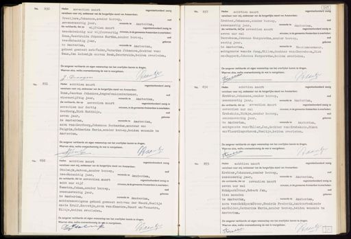 No. 850 Heden zeventien maart negentienhonderd zestig verscheen voor mij, ambtenaar van de burgerlijke stand van Amsterdam: Draaijers, Johannes,zonder beroep, o zevenenzestig jaar, wonende te Amsterdam, die verklaarde, dat op vijftien maart negentienhonderd zestig te tweeëntwintig uur vijfenveertig minuten, in de gemeente Amsterdam is overleden: Gaus, Geertruida Johanna Martha,zonder beroep, oud tweeëntachtig jaar, geboren te Amsterdam, wonende te Amsterdam, gehuwd geweest met: Vader, Gerardus Johannes,dochter van: Gaus, Jan Lodewijk en: van Beek, Geertruida,beiden overleden. De aangever verklaarde uit eigen wetenschap van het overlijden kennis te dragen. Waarvan akte, welke overeenkomstig de wet is voorgelezen. JdanHr J. Draayers No. 853 Heden achttien maart negentienhonderd zestig verscheen voor mij, ambtenaar van de burgerlijke stand van Amsterdam: o Krebber, Johannes,zonder beroep, zesenzestig jaar, wonende te Amsterdam, die verklaarde, dat op zeventien maart negentienhonderd zestig te zeven uur nul minuten, in de gemeente Amsterdam is overleden Dorreboom, Johanna Margaretha,zonder beroep, oud geboren zestig jaar,