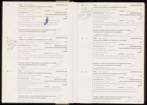 renvooi en de doorhaling van drie woorden. goedgekeurd. J 1 Go Heden vier januari negentienhonderd zestig verscheen voor mij, ambtenaar van de burgerlijke stand van Amsterdam: Meijer, Gerrit Jan,aanspreker, oud negenenveertig jaar, wonende te Amsterdam, die verklaarde, dat op twee januari negentienhonderd zestig t veertien uur, twintig minuten, in de gemeente Amsterdam is overleden o Veenis,Willem,winkelier, geboren zesenvijftig jaar, te Krommenie, wonende te Amsterdam, echtgenoot van: Boot,Agatha,zoon van: Veenis, Jan en: overleden Tuijn, Maartje,beiden overleden,zonder beroep,wonende te Krommenie. De aangever verklaarde uit eigen wetenschap van het overlijden kennis te dragen. Waarvan akte, welke overeenkomstig de wet is voorgelezen. 1 Grrigger No. No. de doorhaling van twee waor- J den goedgekeurd 17 Gf Heden Vier januari negentienhonderd zestig verscheen voor mij, ambtenaar van de burgerlijke stand van Amsterdam: - van der Poll, Franciscus Michael, begrafenisondernemer, oud 4 vijfenvijftig jaar, wonende te Amsterdam, die verklaarde, dat op drie januari negentienhonderd zestig t drie uur dertig minuten, in de gemeente Amsterdam is overleden le Cosquino de Bussy, Jan Remmert,, oud vijf dagen,vier dagen, geboren te Amsterdam, wonende te Amsterdam, zoon van: le Cosquino de Bussy, Louis Philibert,ingenieur, en: de Lange, Anna Elisabeth,zonder beroep,beiden wonende te Amsterdam, De aangever verklaarde uit eigen wetenschap van het overlijden kennis te dragen. Waarvan akte, welke overeenkomstig de wet is voorgelezen. 7 Jo L7 No. E Heden vier januari negentienhonderd zestig verscheen voor mij, ambtenaar van de burgerlijke stand van Amsterdam: Meijer, Gerrit Jan,aanspreker, oud negenenveertig jaar, wonende te Amsterdam, die verklaarde, dat op twee januari negentienhonderd zestig te acht uur,dertig minuten, in de gemeente Amsterdam is overleden de Roth, Johannes,zonder beroep, oud eenentachtig jaar, geboren te Amsterdam, wonende te Amsterdam, gehuwd: geweest met: Muller, Jacoba Marcella,zoon van: de Roth, Hendricus en: Burger, Matthea,beiden overleden. De aangever verklaarde uit eigen wetenschap van het overlijden kennis te dragen. Waarvan akte, welke overeenkomstig de wet is voorgelezen. Gmegin 7 No. 6 Heden vier januari negentienhonderd zestig verscheen voor mij, ambtenaar van de burgerlijke stand van Amsterdam: Meijer, Gerrit Jan,aanspreker, oud negenenveertig jaar,, wonende te Amsterdam, die verklaarde, dat op twee januari negentienhonderd zestig te vijftien uur nul minuten, in de gemeente Amsterdam is overleden van der Rijst, Johannes,zonder beroep, oud vierenzeventig jaar, geboren te Utrecht, wonende te Amsterdam, echtgenoot van: van Eerde, Jannetje Catharina Hendrikje, zoon van: van der Rijst, Paulus en: de Groot, Cornelia, beiden overleden. De aangever verklaarde uit eigen wetenschap van het overlijden kennis te dragen. Waarvan akte, welke overeenkomstig de wet is voorgelezen. Bnrgir No. 8 Heden vier januari negentienhonderd zestig verscheen voor mij, ambtenaar van de burgerlijke stand van Amsterdam: Meijer, Gerrit Jan,aanspreker; oud negenenveertig jaar, wonende te Amsterdam, die verklaarde, dat op twee januari negentienhonderd zestig te vijftien uur dertig minuten, in de gemeente Amsterdam is overleden Nijland, Frederik Hermannus,zonder beroep, oud eenenzeventig jaar, geboren wonende te Amsterdam, te Amsterdam, echtgenoot van: de Louwer, Johanna Wilhelmina,zoon van: Nijland, Hermannus, en: Romunde, Gosiena,beiden overleden. De aangever verklaarde uit eigen wetenschap van het overlijden kennis te dragen. /1 Waarvan akte, welke overeenkomstig de wet is voorgelezen. CnV.